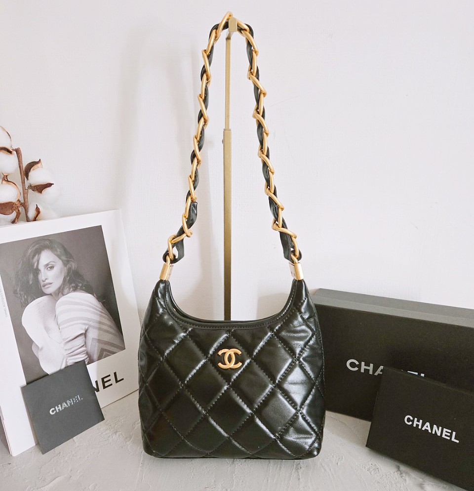 샤넬 호보백 스몰 램스킨 금장 블랙