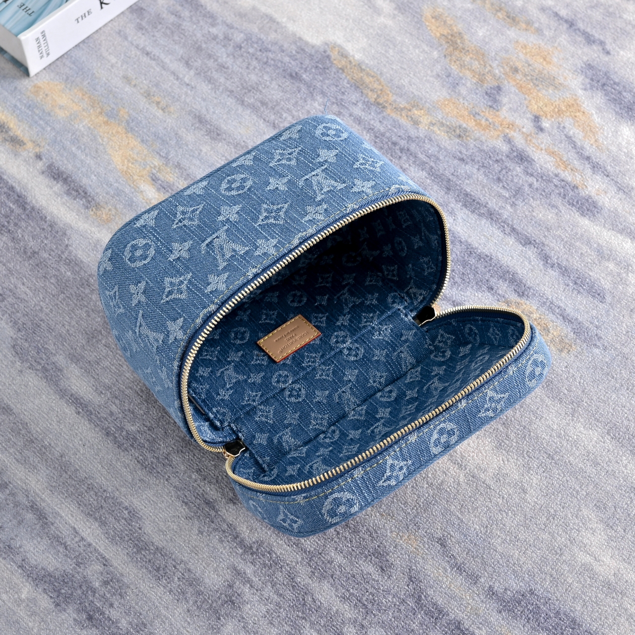 ◇ 소 재 : 모노그램 블루 데님, 천연 카우하이드 가죽 소재의 트리밍, 면 안감