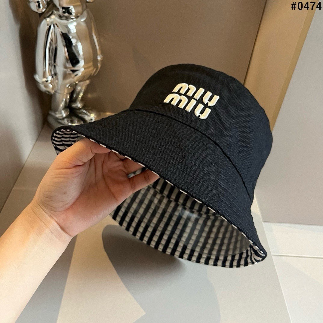[MIUMIU] 미우미우 리버시블 코튼 양면 버킷햇