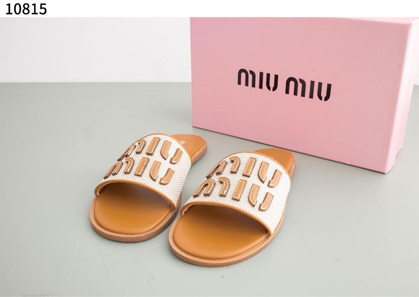 미우미우 캔버스 및 가죽 슬라이드 베이지