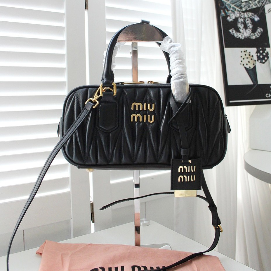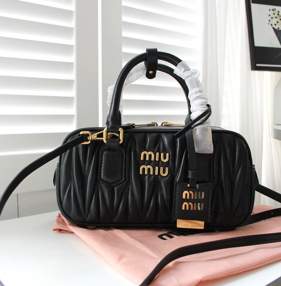 미우미우[ 고급 ] 아르카디 마테라쎄 토트백 직사각 검정