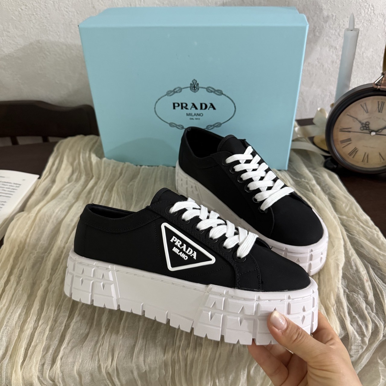 프라다 나일론 개버딘 스니커즈