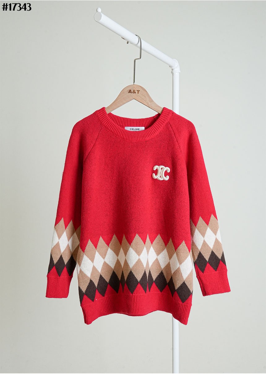 셀린느 트리옹프 아가일 울 니트 풀오버