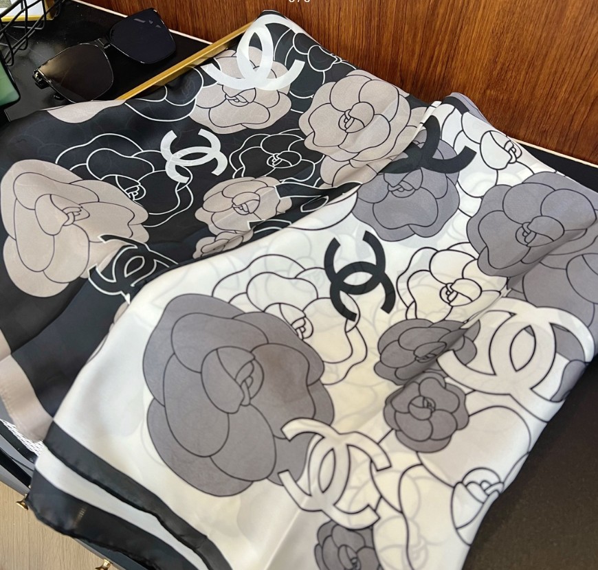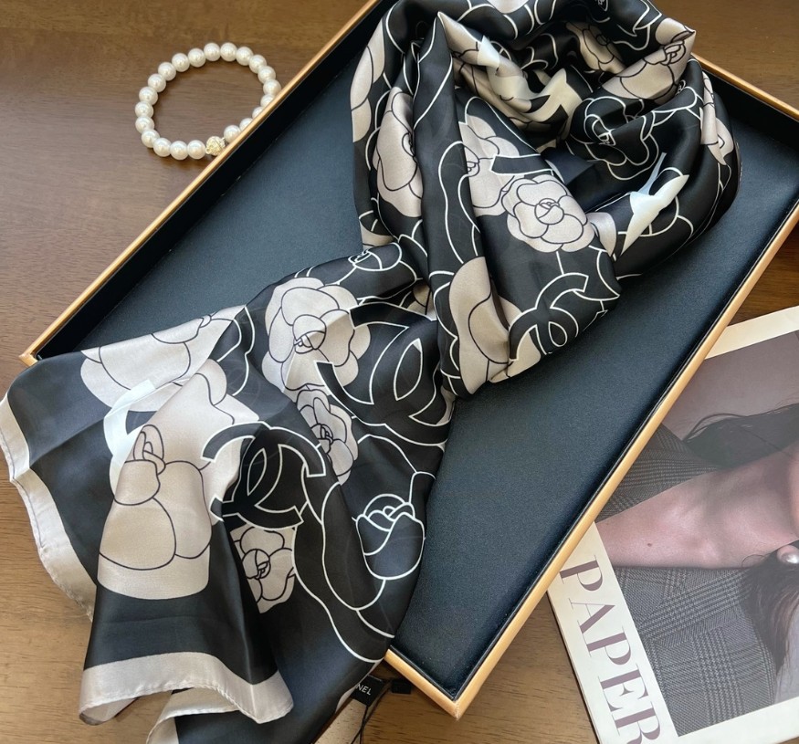 샤넬 까멜 플라워 실크 스카프