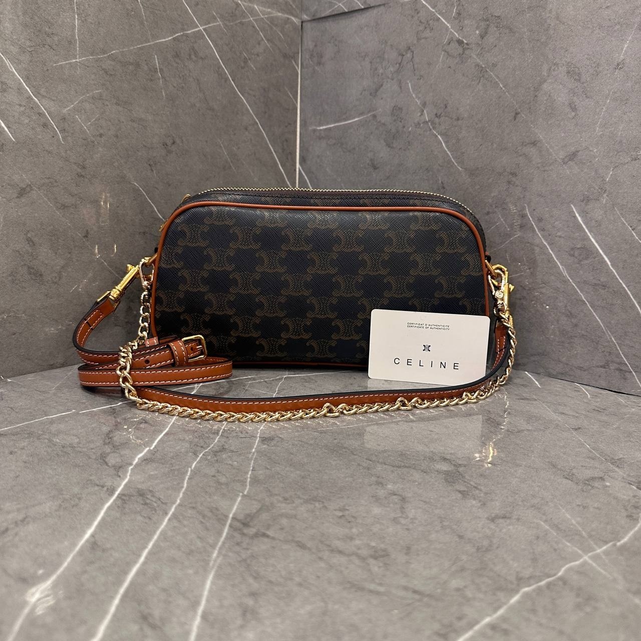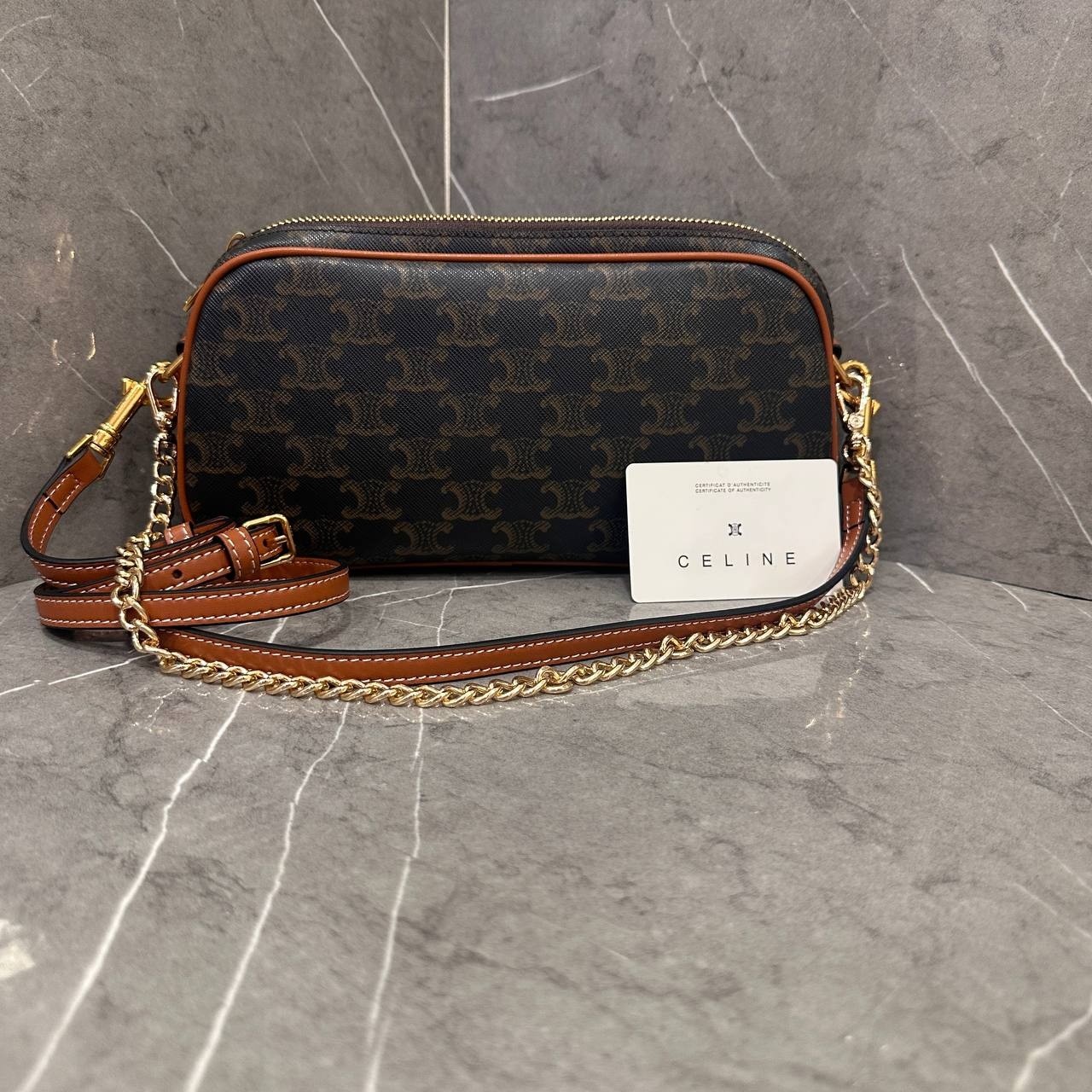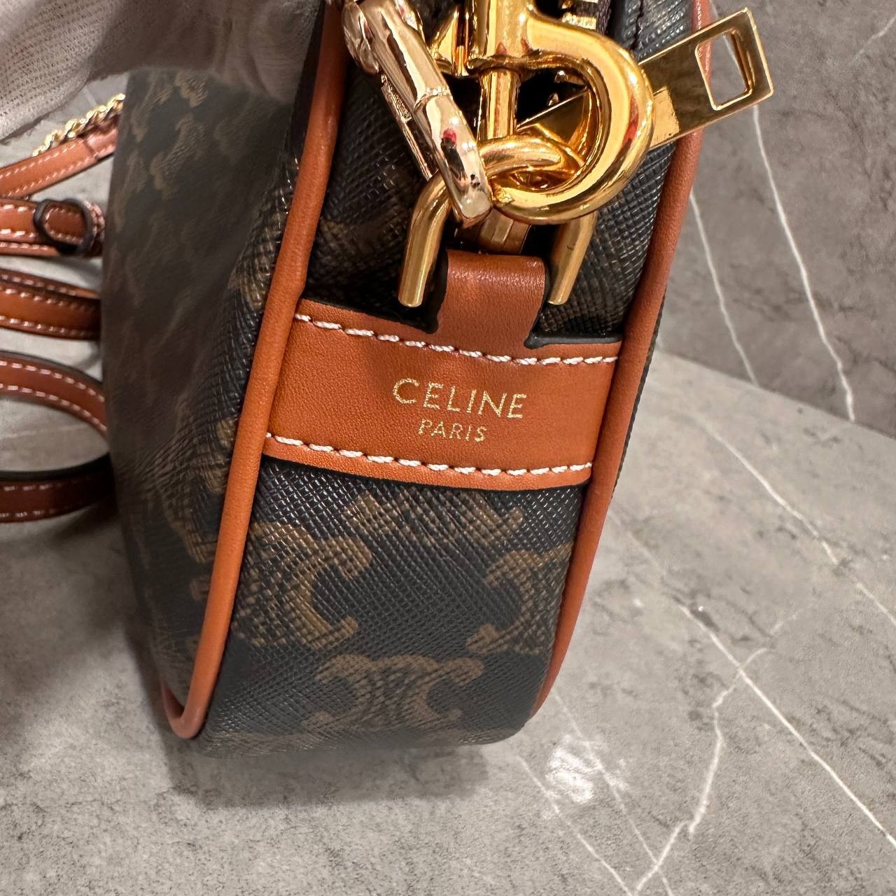 셀린느 멀티 백 트리옹프 캔버스 카프스킨 탄
