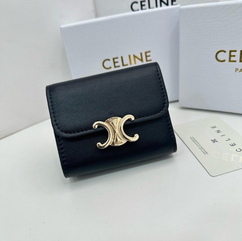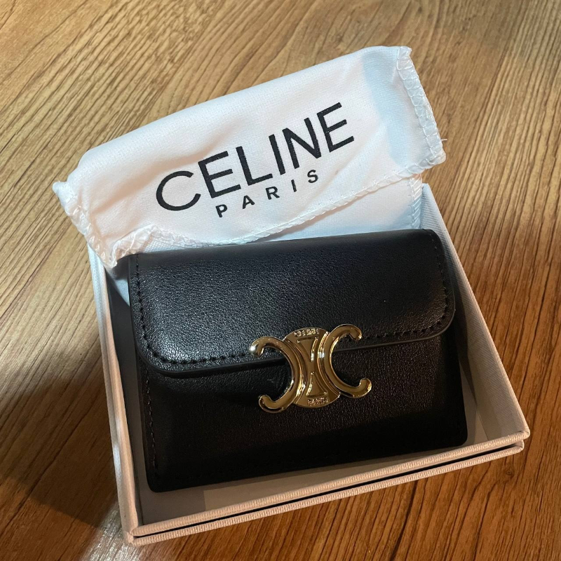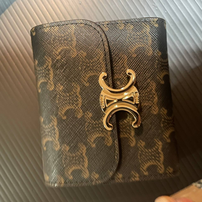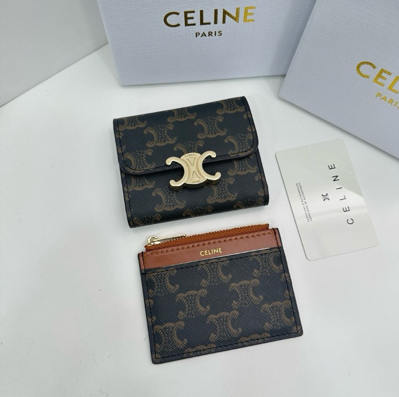 셀린느 트리오페 3단 동전 컴팩트 반지갑 브라운 탄/블랙