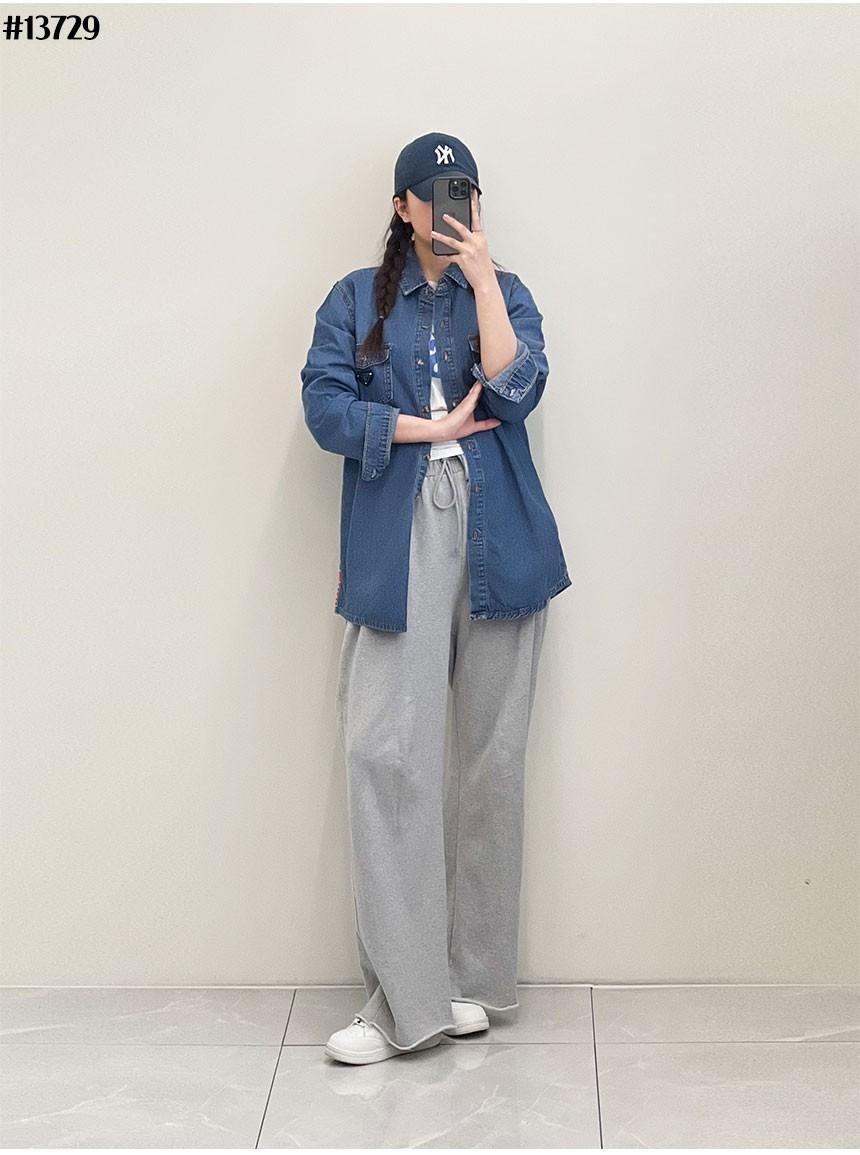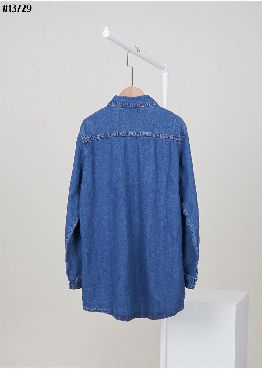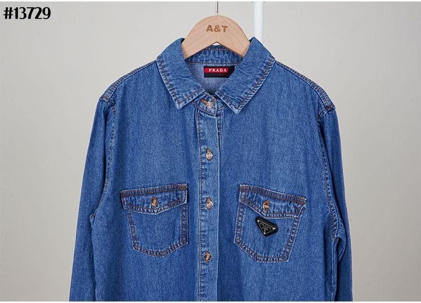 [PRADA] 프라다 여성 빈티지 포켓 삼각 로고 루즈핏 데님 셔츠
