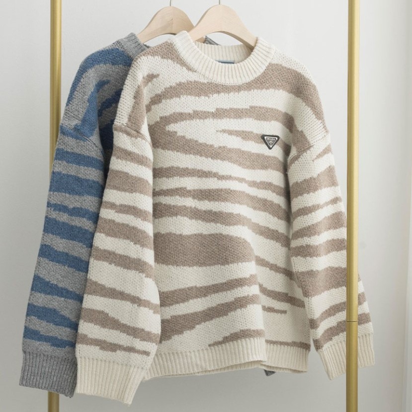 [PRADA] 프라다 오버 사선 지브라 패턴 스웨터