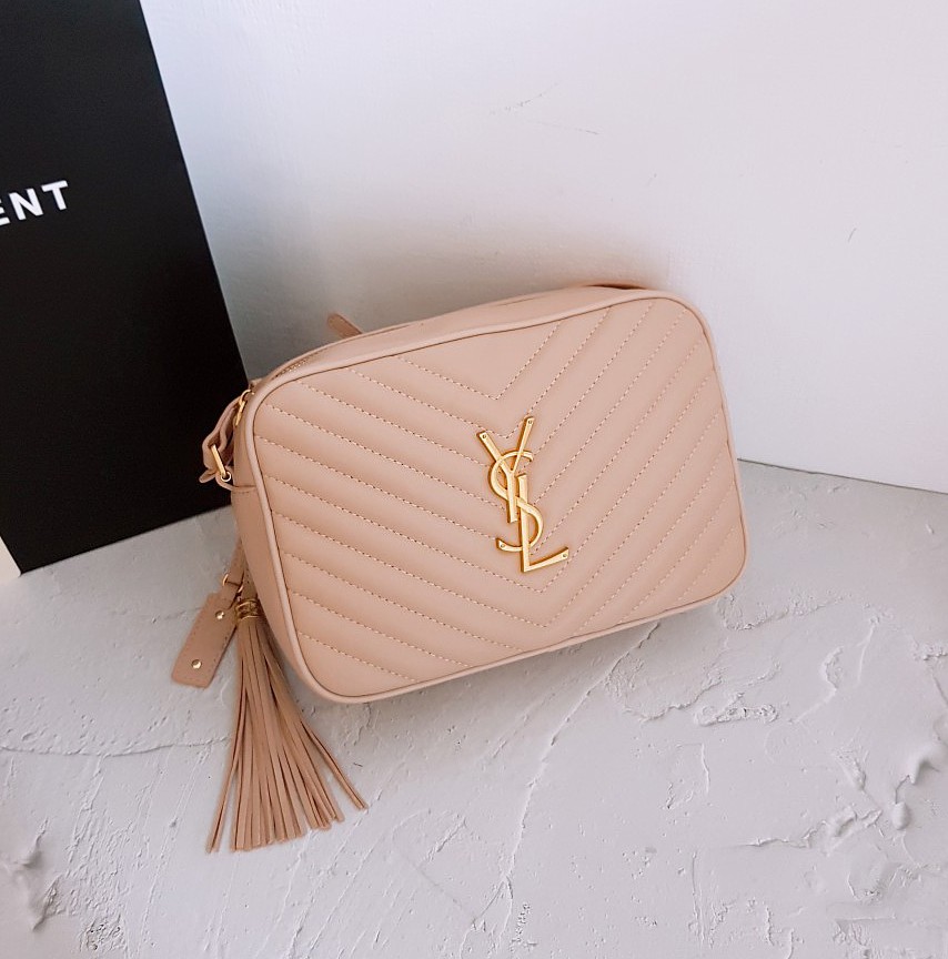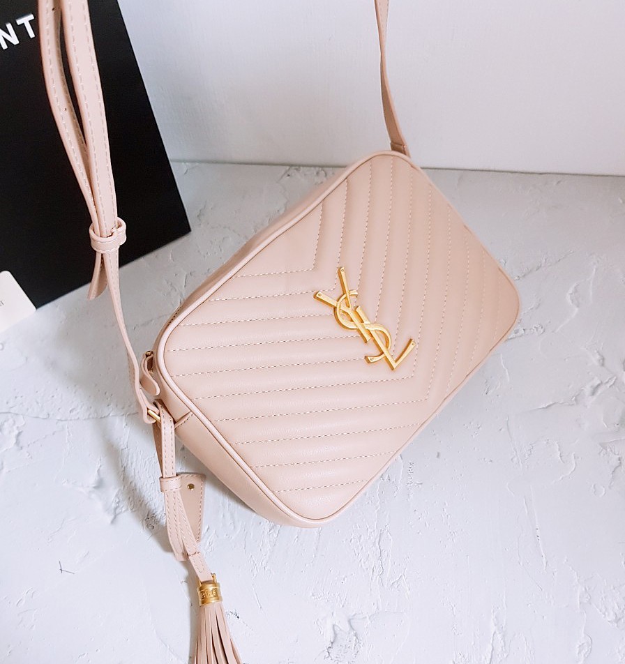 생로랑 금장 로고 카메라백(핑크)