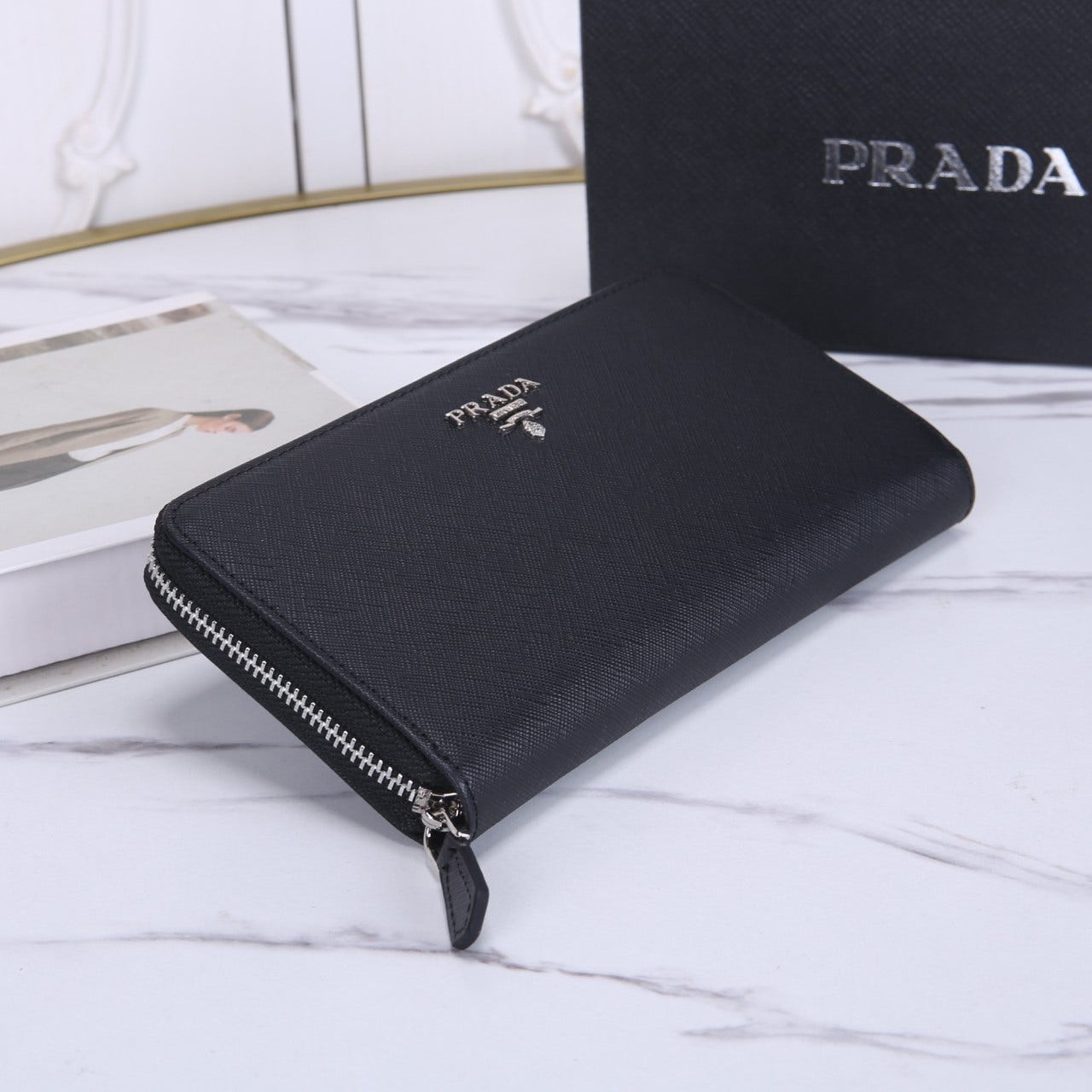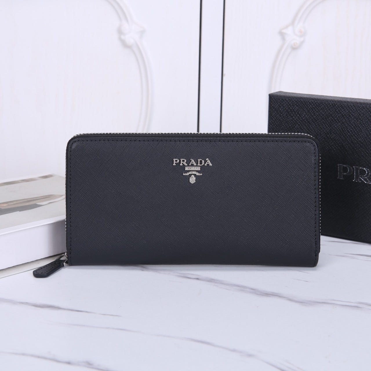 프라다 Saffiano (사피아노) 지퍼 장지갑 (메탈 로고)