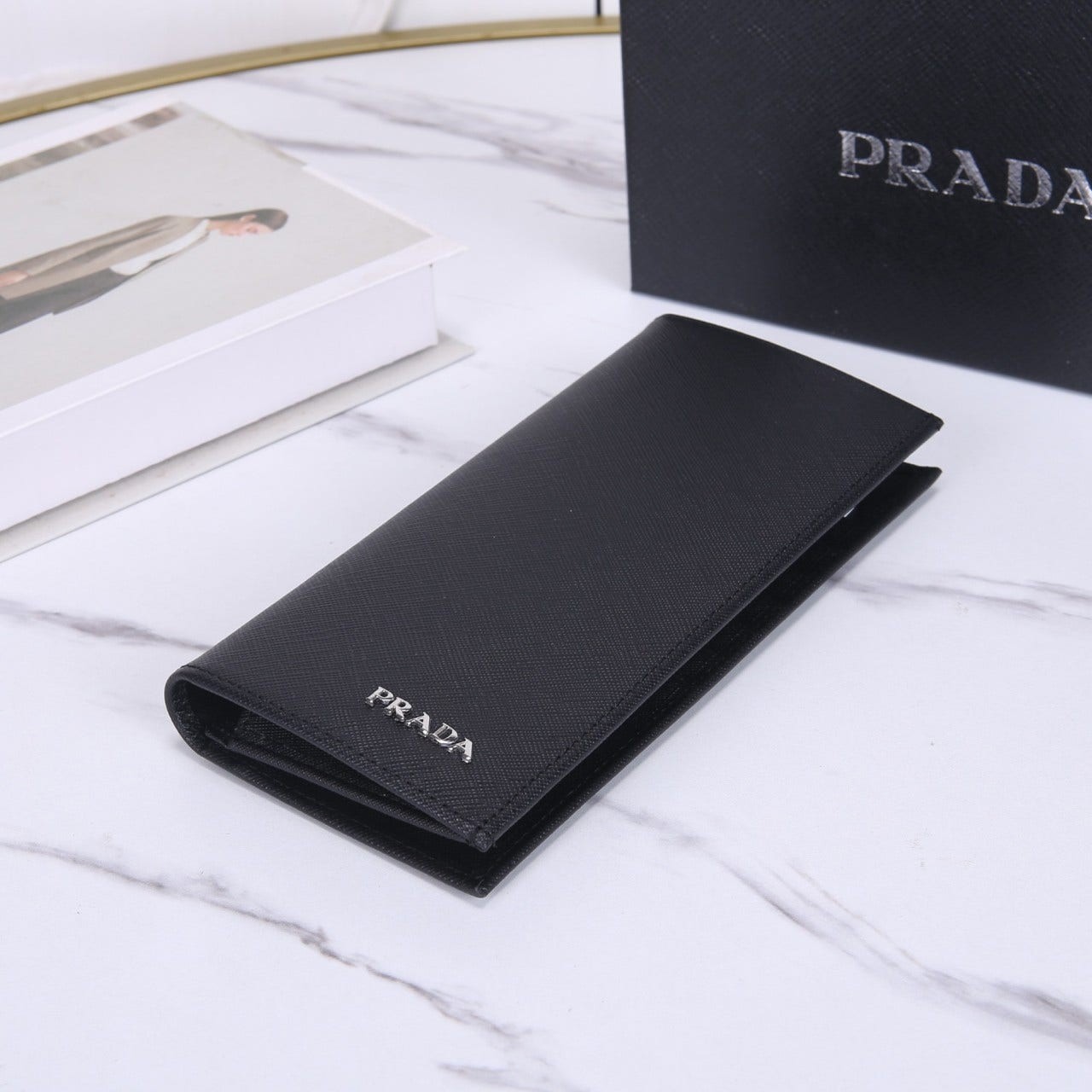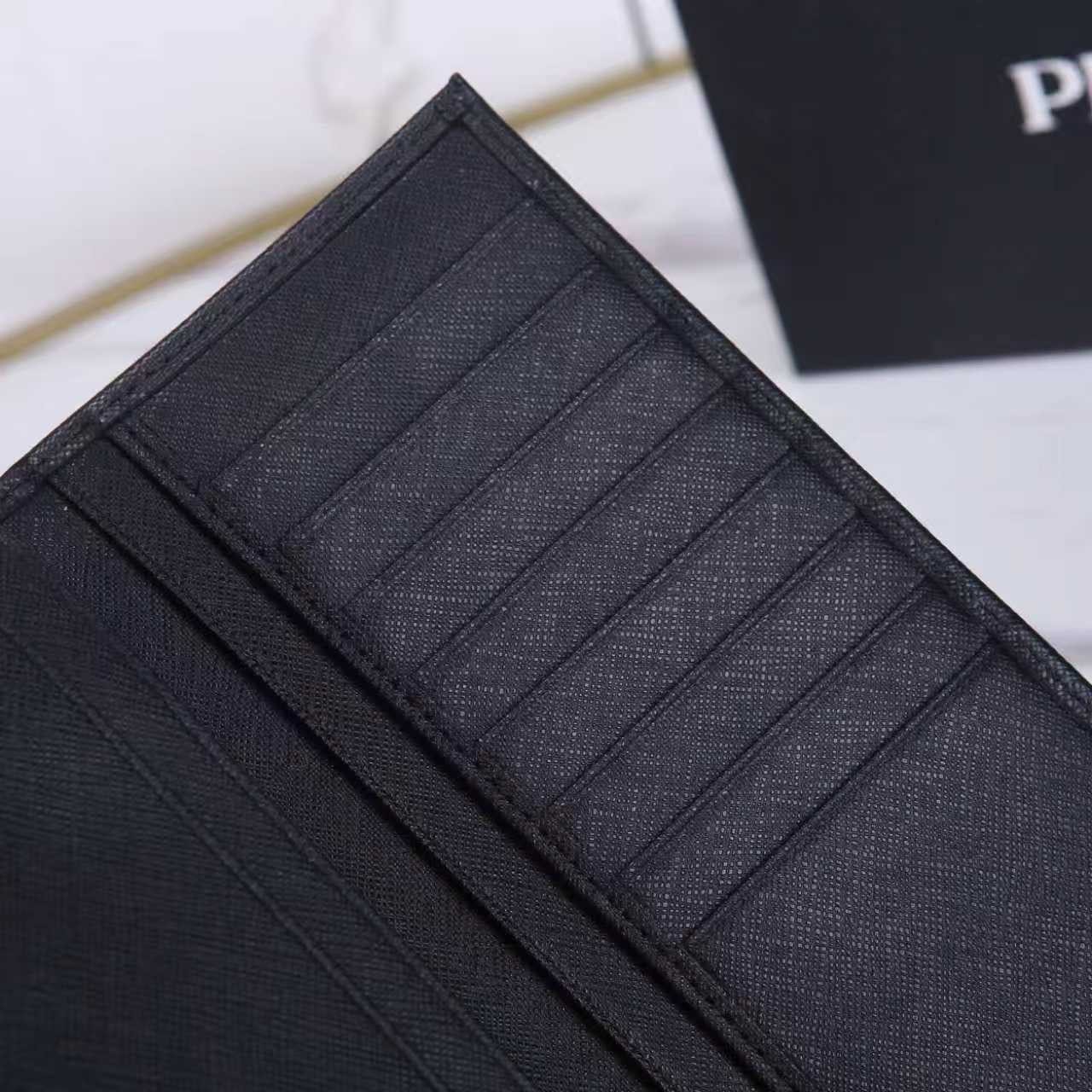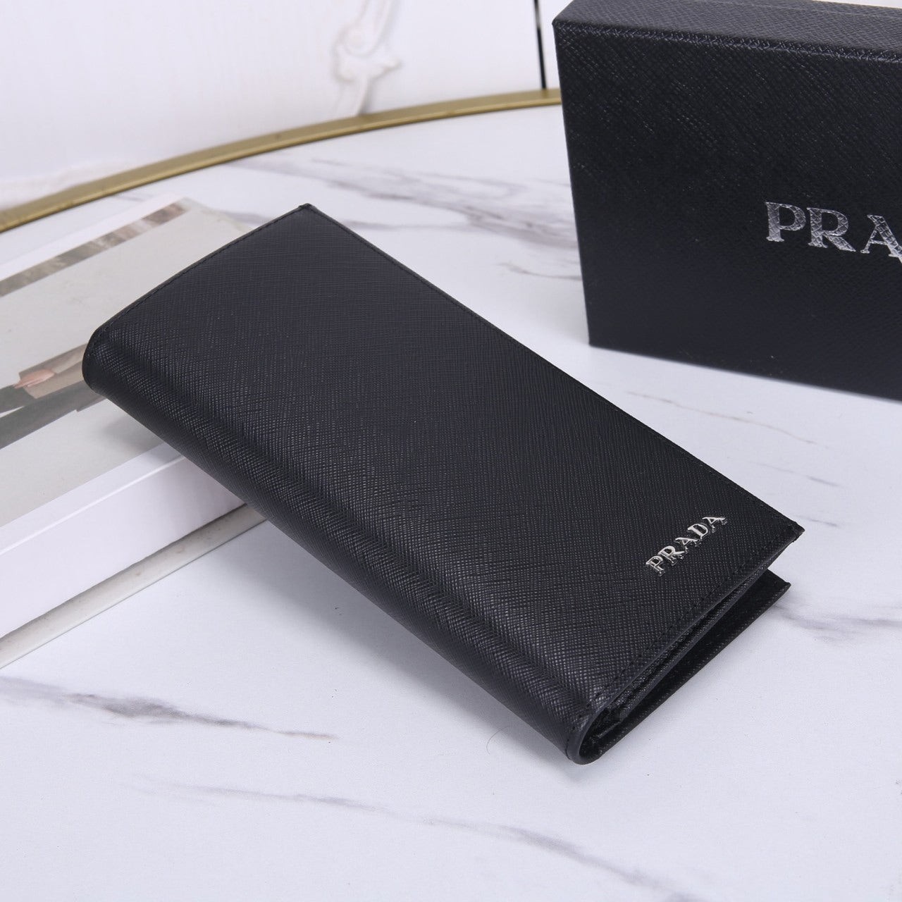 프라다의 가장 클래식한 소재와 디자인이 결합된 남성용 플랩형 장지갑입니다.