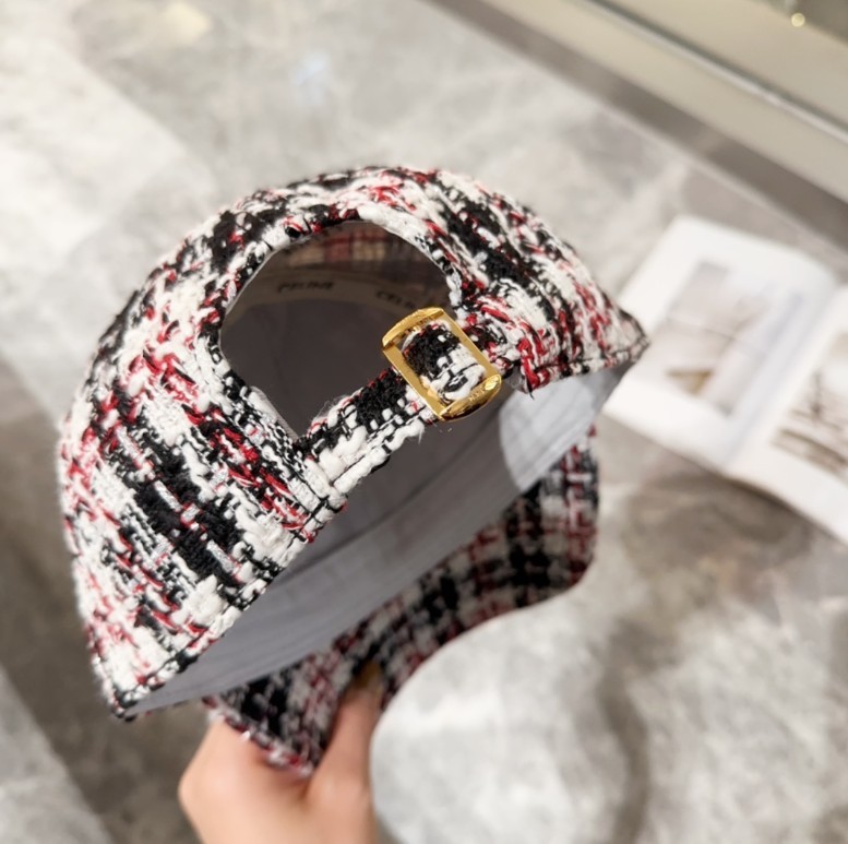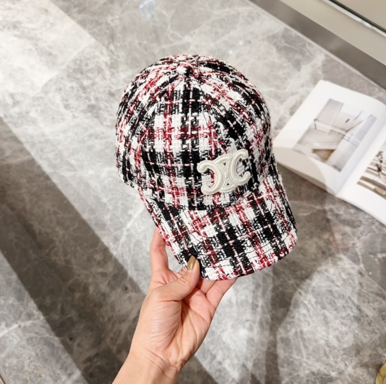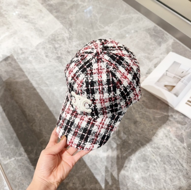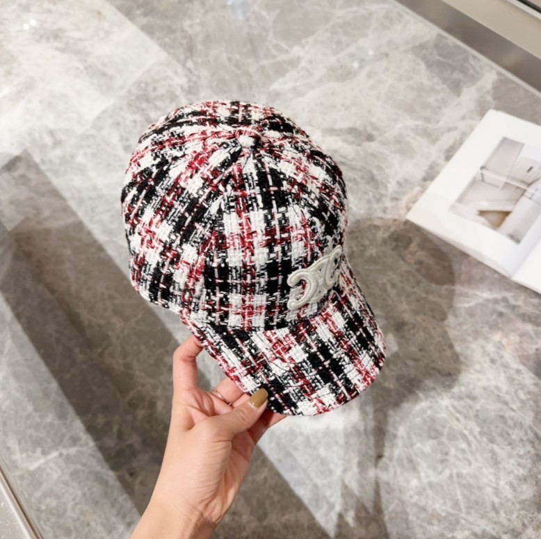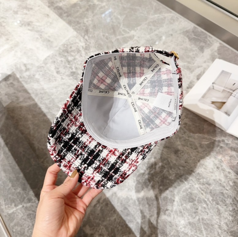 셀린느 신상 체크 트위드 울 볼캡 캡모자(레드)