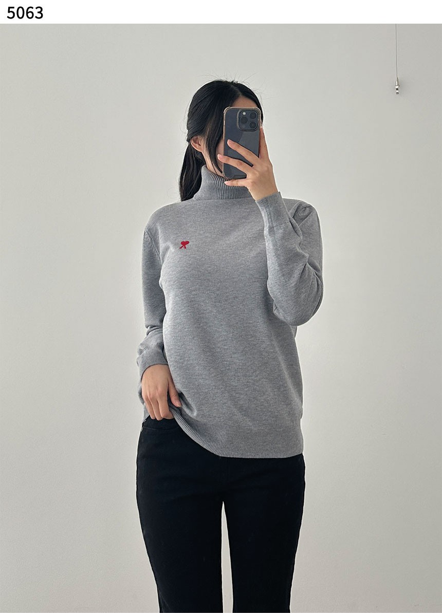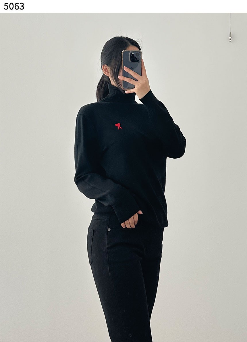 [AMI] 아미 수입고급 하트 로고 메리노 울 터틀넥 니트