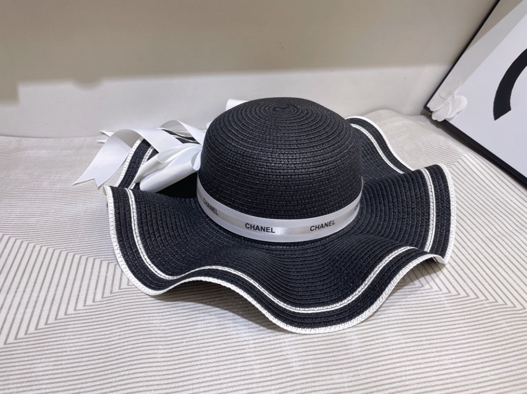 샤넬 리본 띠 벙거지 지사 밀짚모자 / 2COLOR