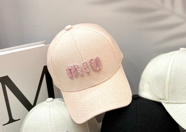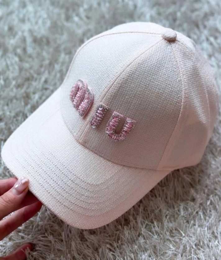 미우미우 트위드 볼캡 진주 캡모자 핑크