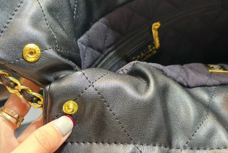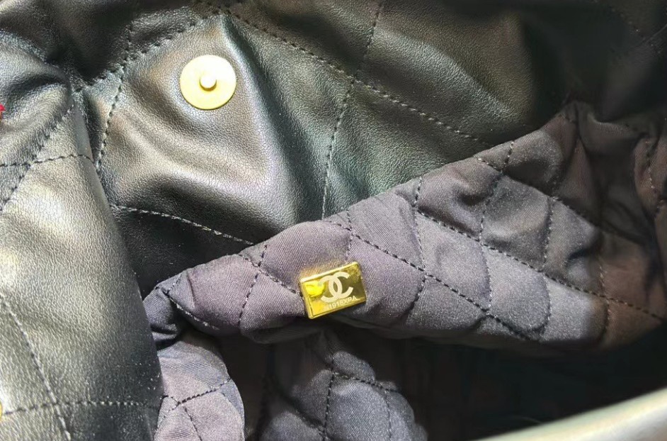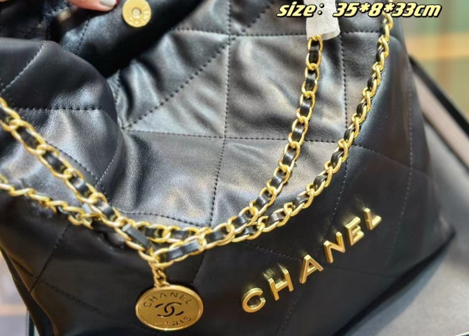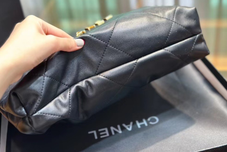 샤넬 22백 유광 카프스킨 골드 메탈 블랙