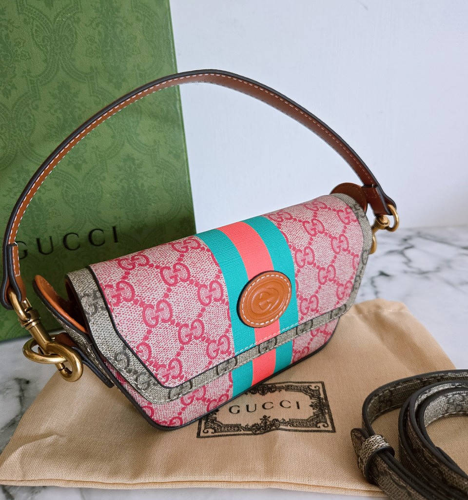 구찌 25년형 리뉴얼 웹(WEB) GG 탑 핸들 미니백