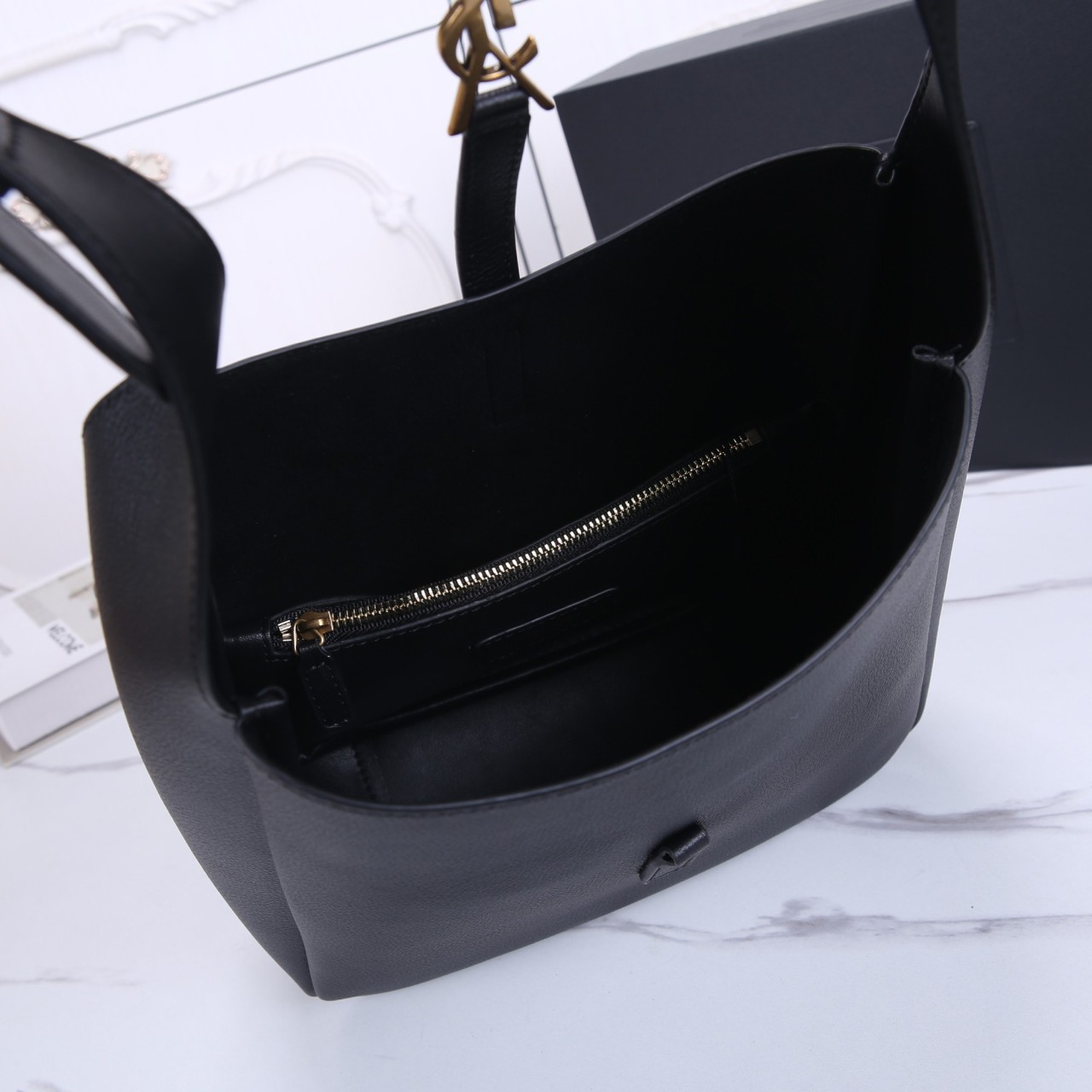 블랙 컬러의 그레인 레더 소재로 제작된 카이아 호보 백입니다. 간결하고 유려한 실루엣이 특징이며, 전면의 톤온톤 가죽 루프와 골드 톤 YSL 모노그램 장식이 시그니처 포인트를 더합니다. 충분한 내부 공간과 어깨에 편안하게 착용되는 숄더 스트랩으로 데일리 백으로 활용하기 좋습니다.
