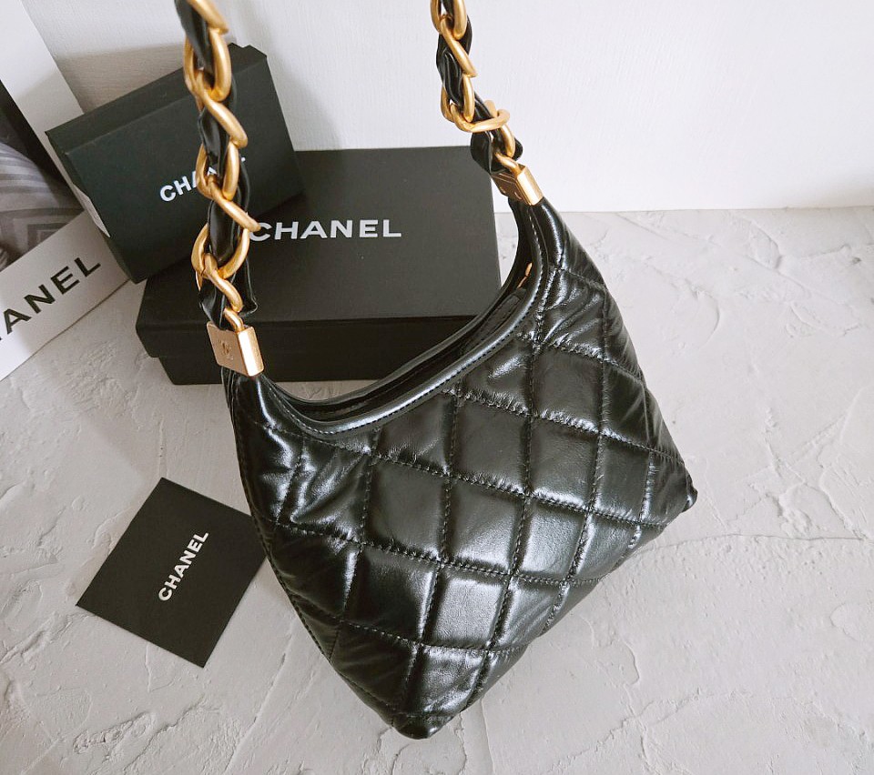 샤넬 호보백 스몰 램스킨 금장 블랙