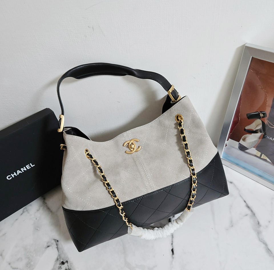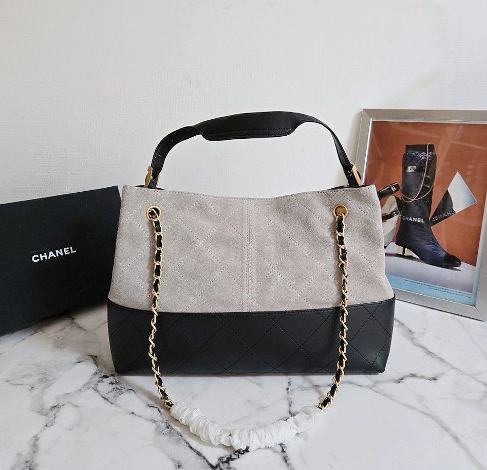 샤넬 25A 공방 스웨이드 투톤 쇼퍼 호보백 그레이