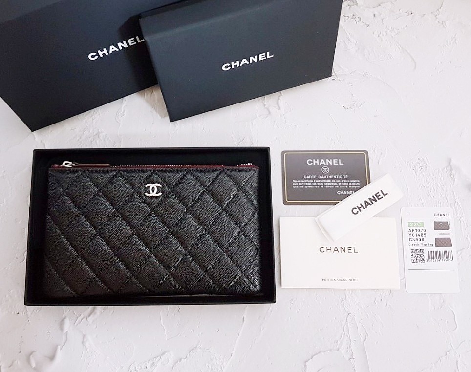 샤넬 캐비어 파우치 스몰 클러치 금장 / 은장
