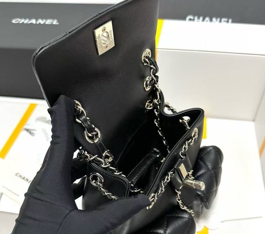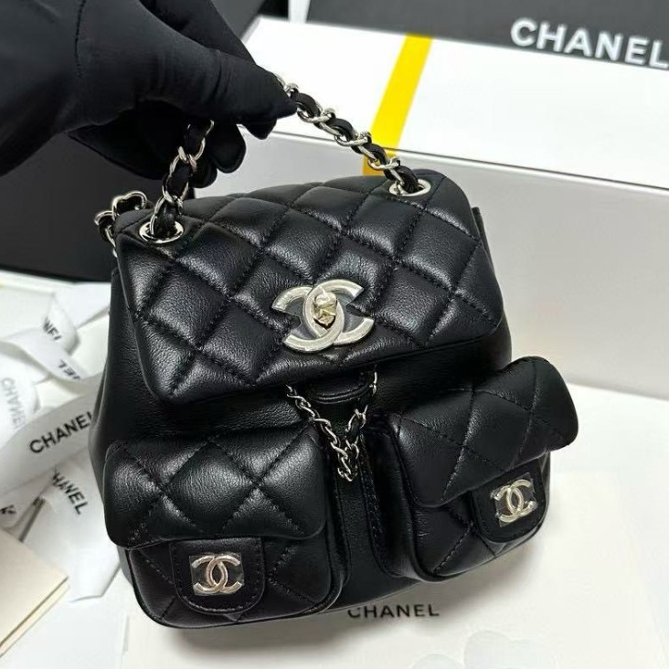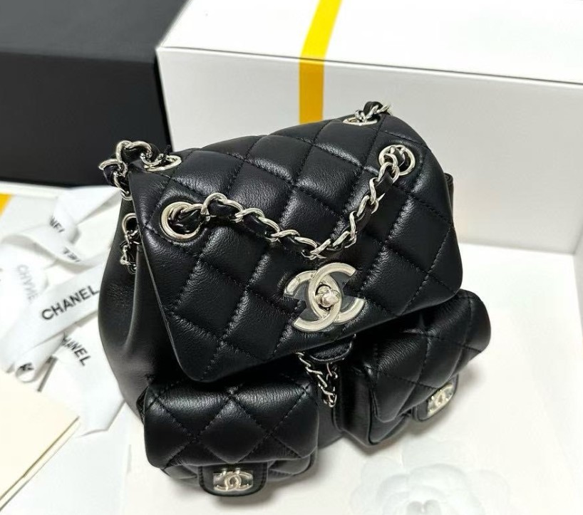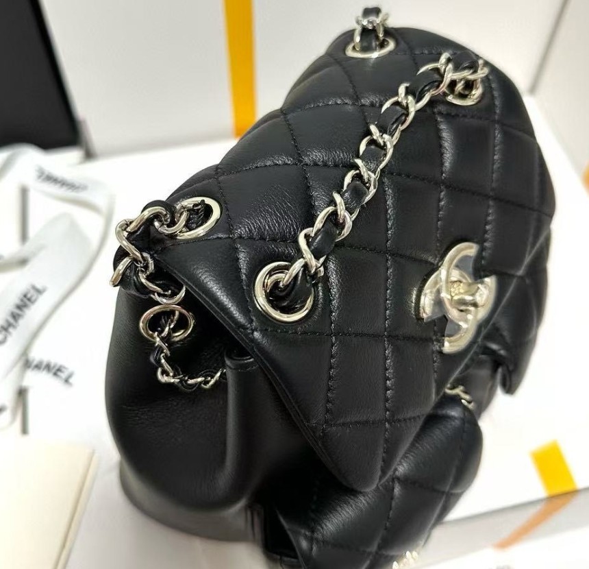 샤넬 백팩 그레인드 샤이니 카프스킨 & 골드 메탈 블랙
