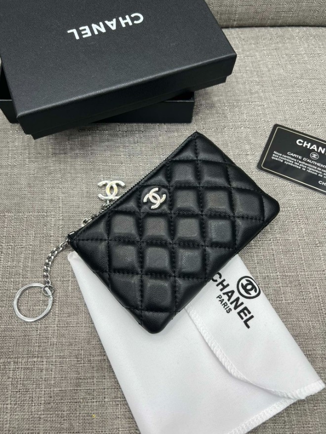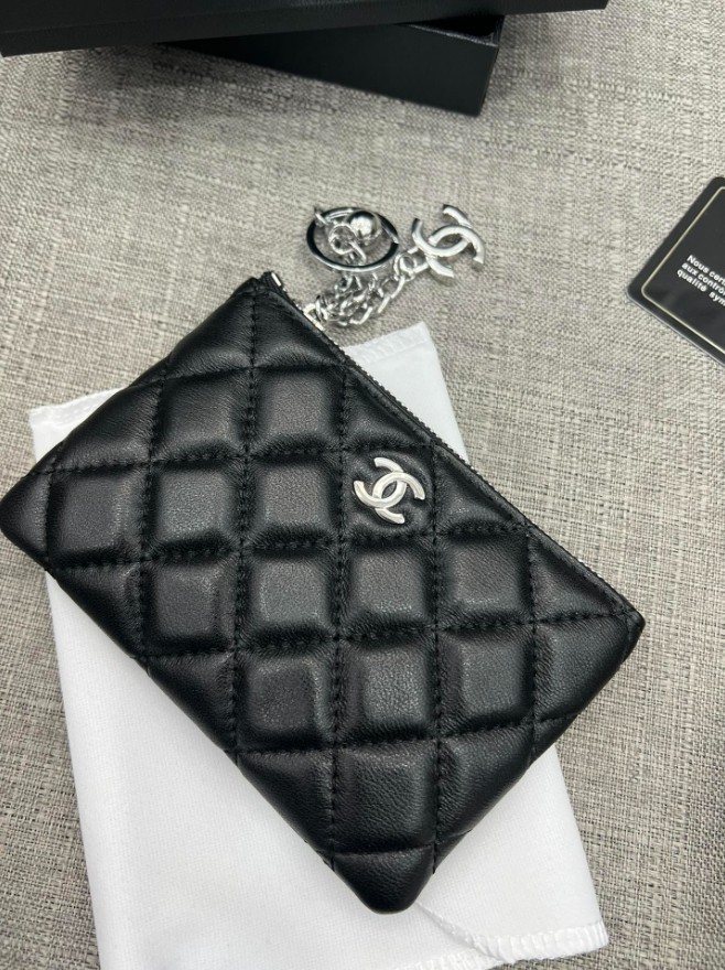 샤넬 파우치 지갑 램스킨 블랙 은장 / 핑크 은장