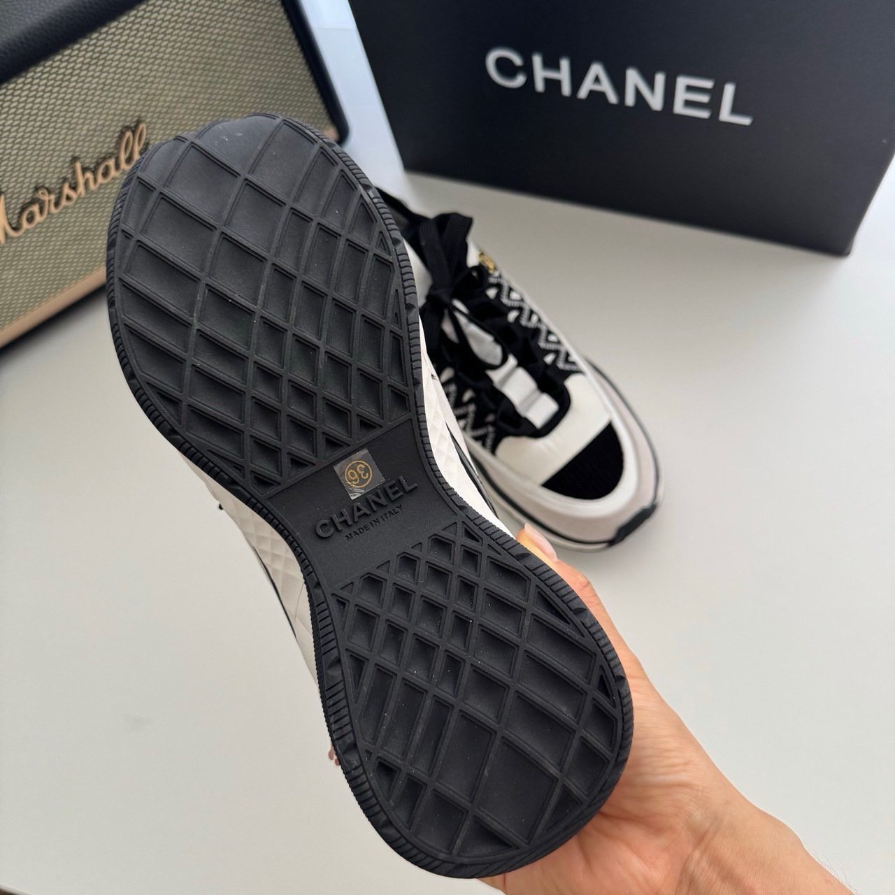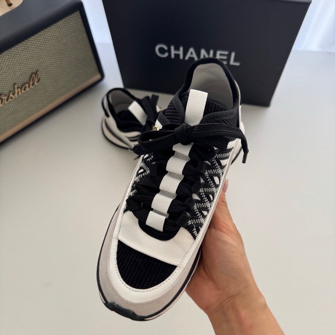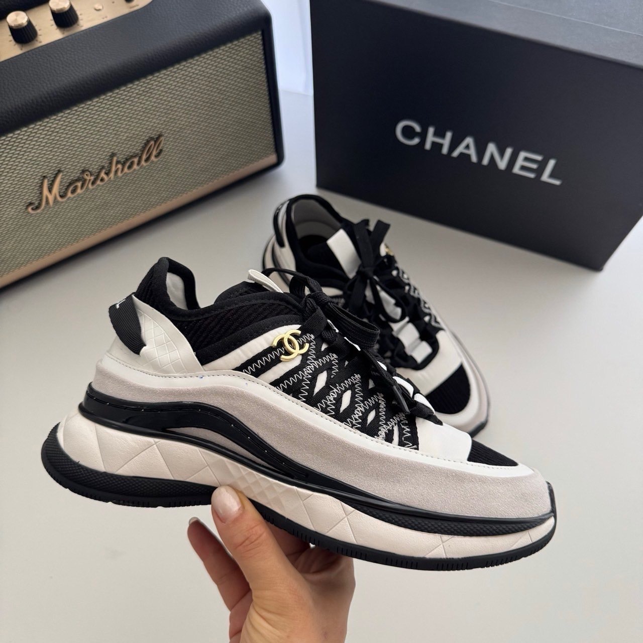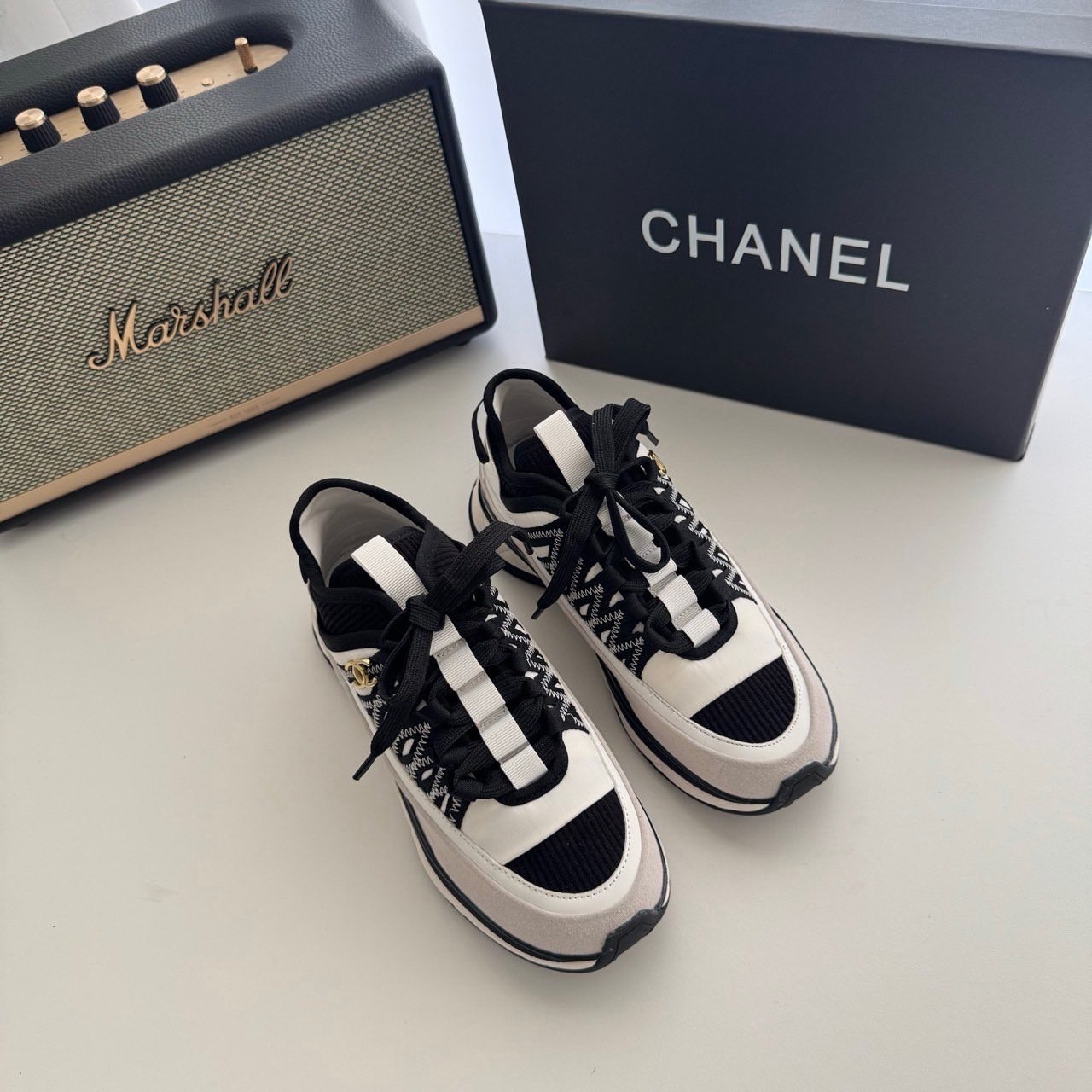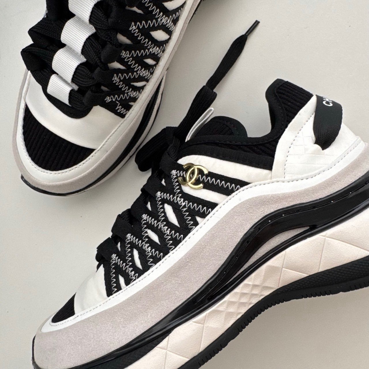 샤넬 코코마크 패브릭 스니커즈(화이트&블랙)
