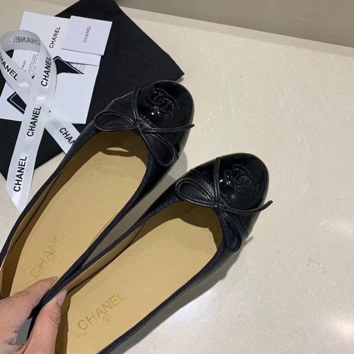 샤넬 클래식 램스킨 발레리나 플랫슈즈 에나멜 유광 블랙