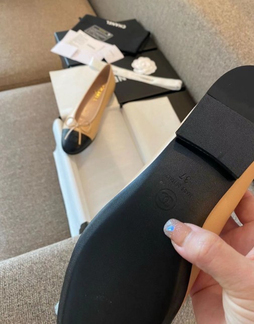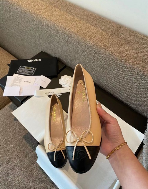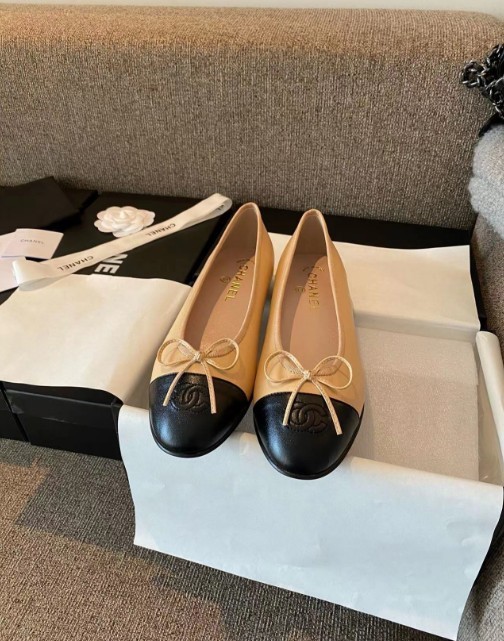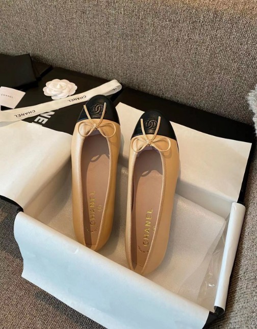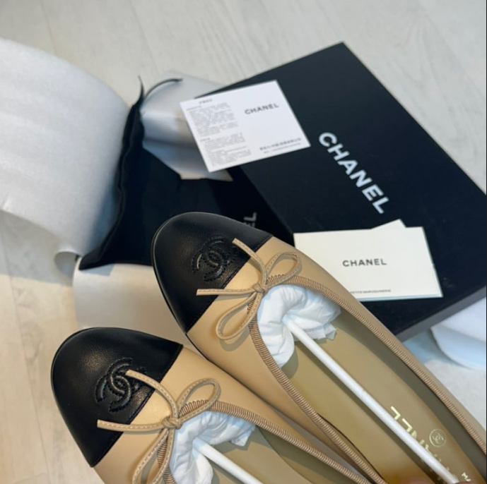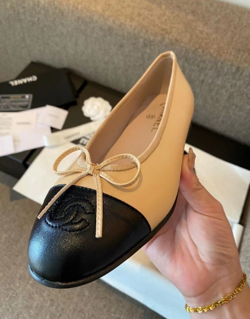 샤넬 투톤 램스킨 발레리나 플랫슈즈 베이지 블랙