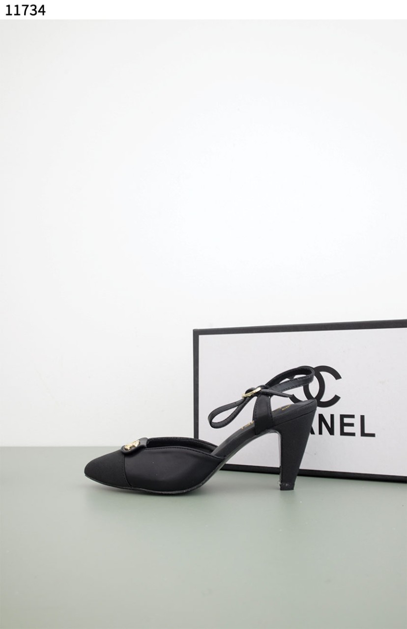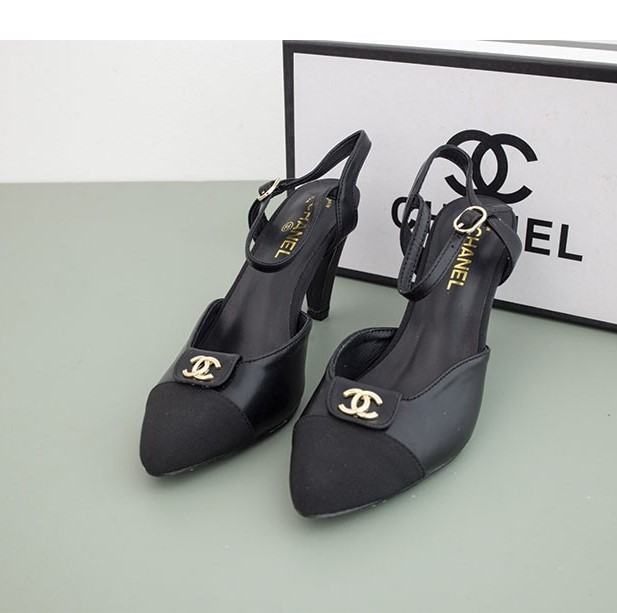 [Chanel] 블랙 금장 스트랩 슬링백 펌프스