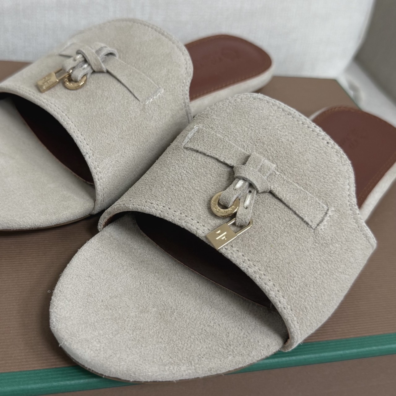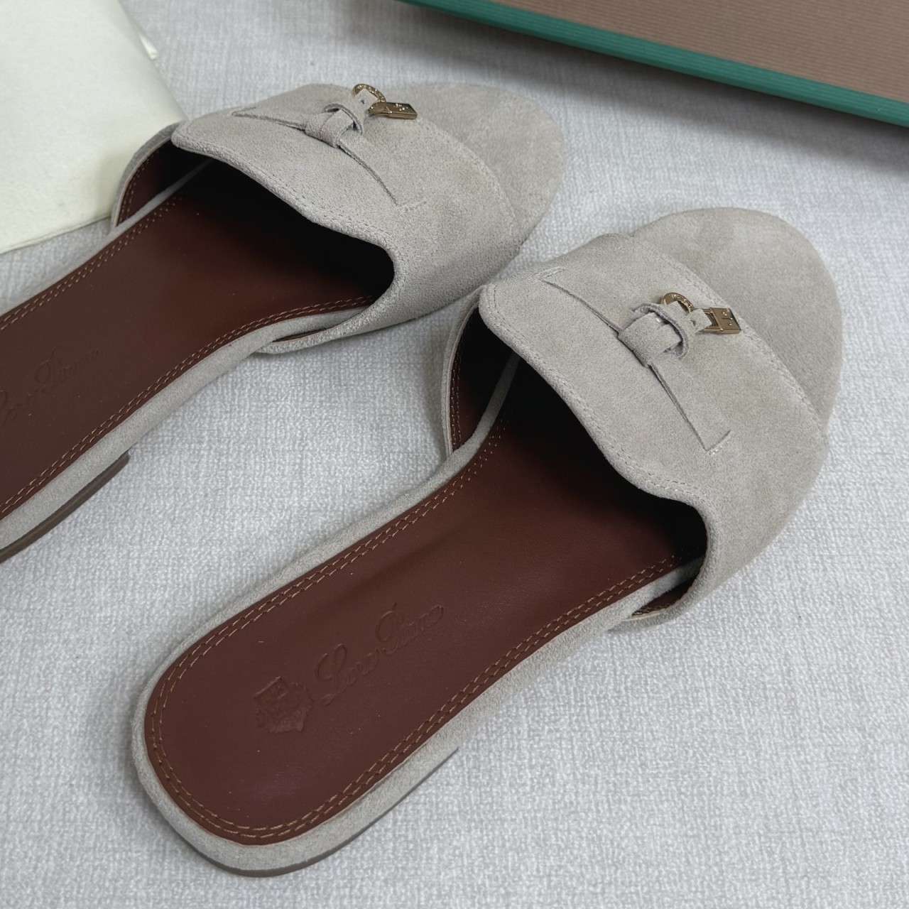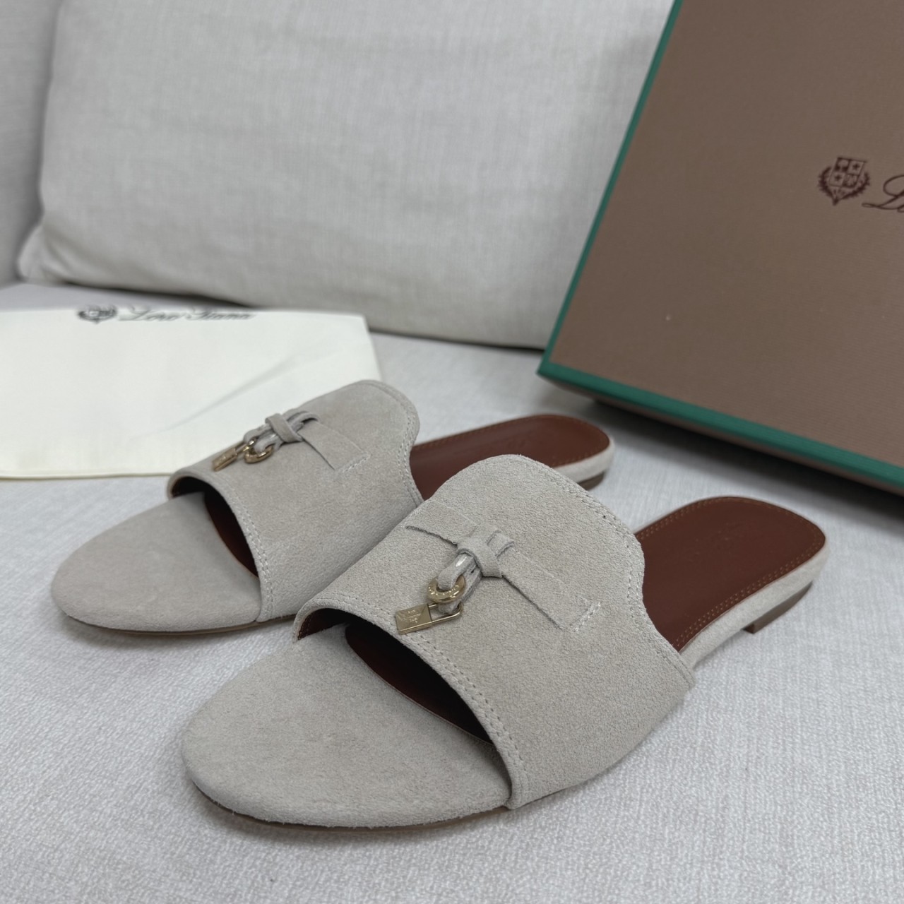 로로피아나 썸머 참스 스웨이드 샌들 뮬 슬리퍼