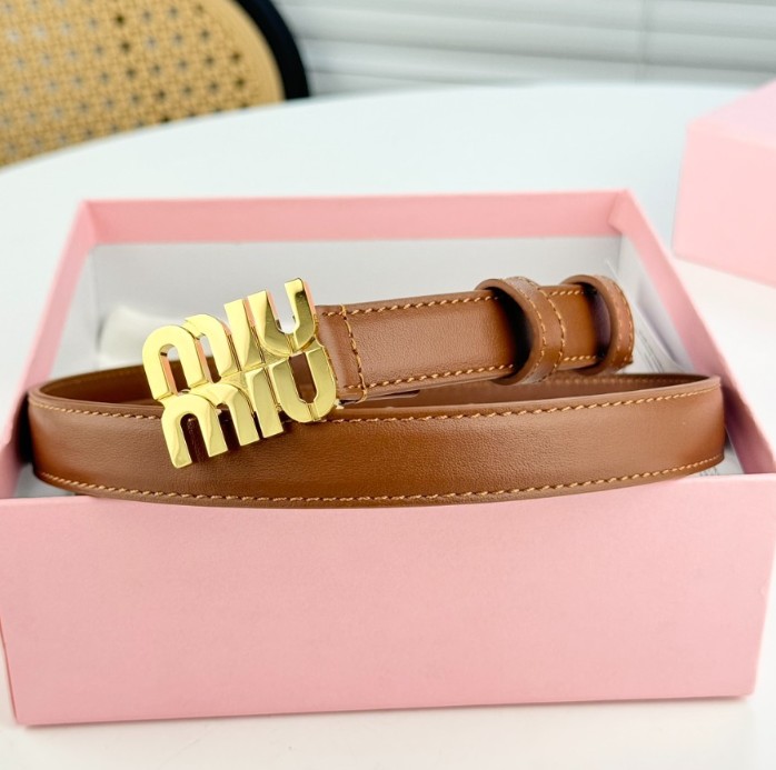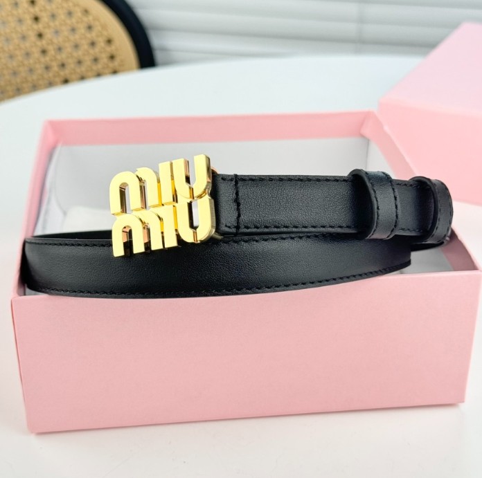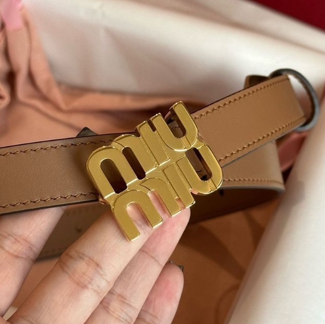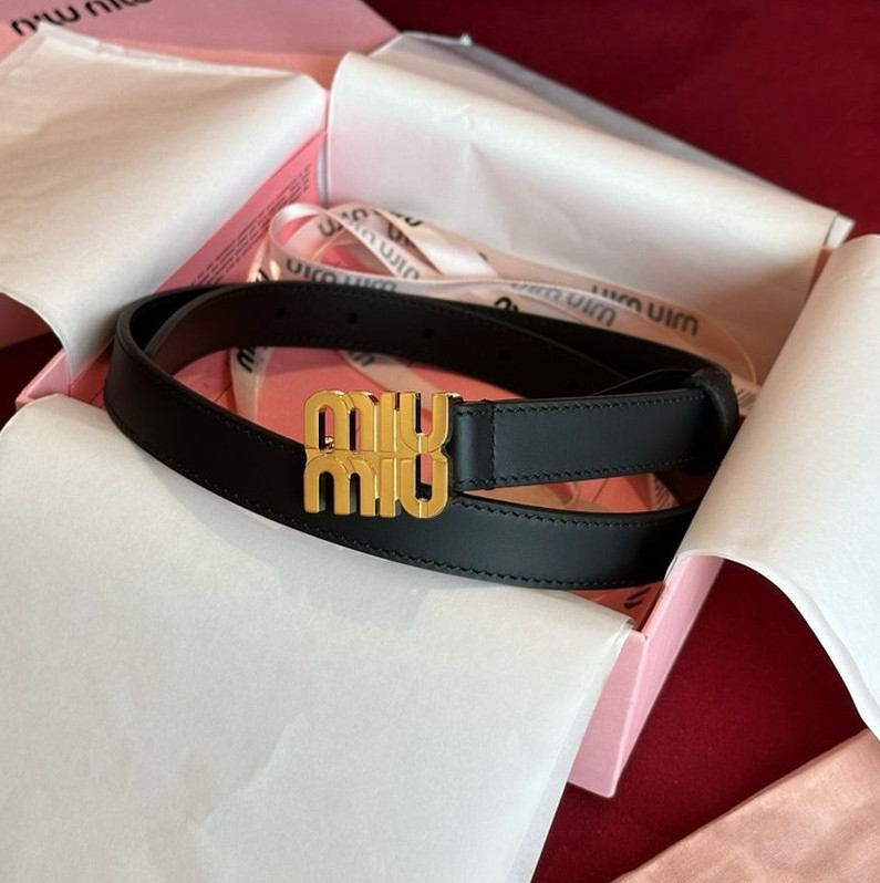 미우미우 메탈 금장 로고 버클 가죽 벨트