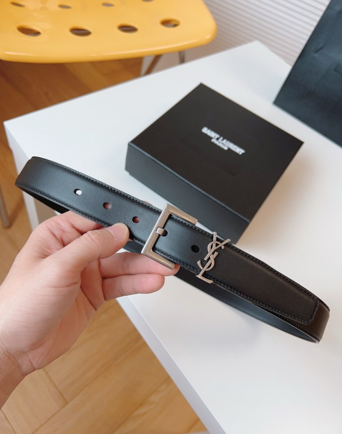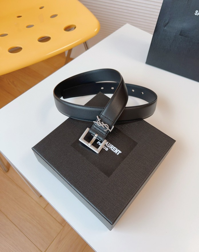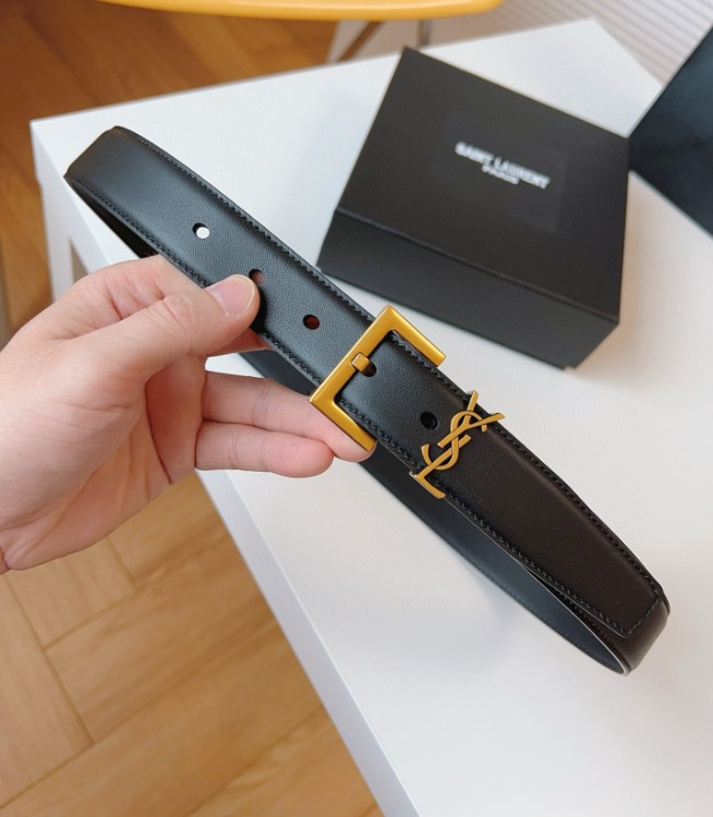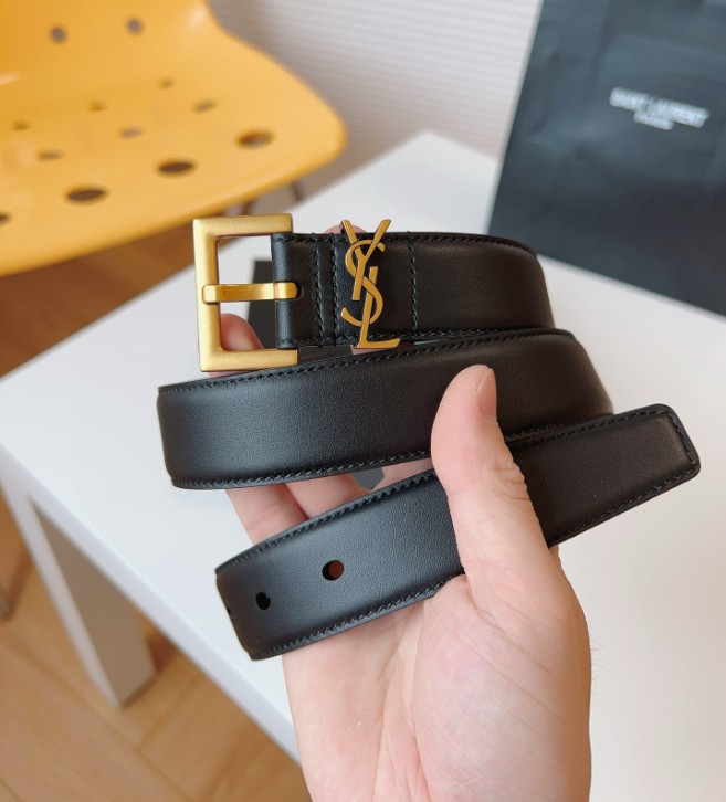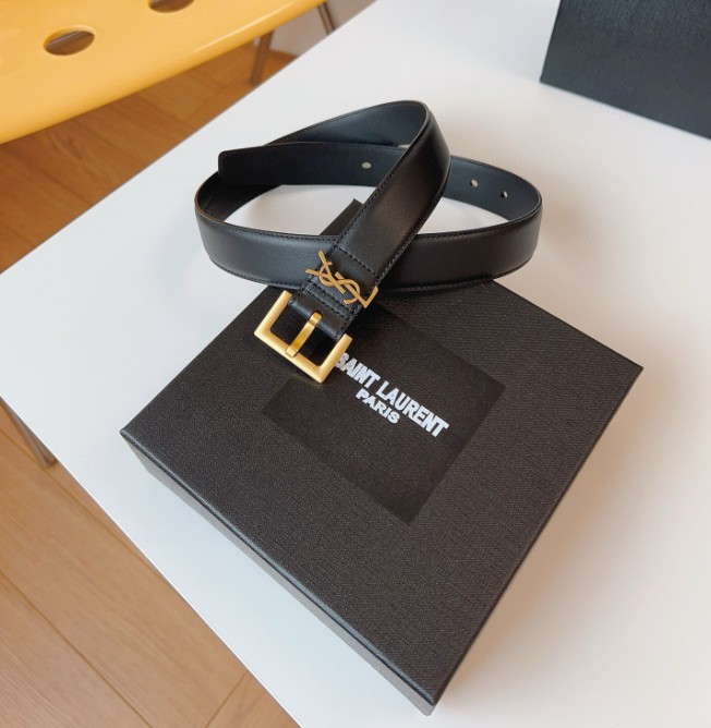 생로랑 스무스 레더 골드 모노그램 벨트 블랙