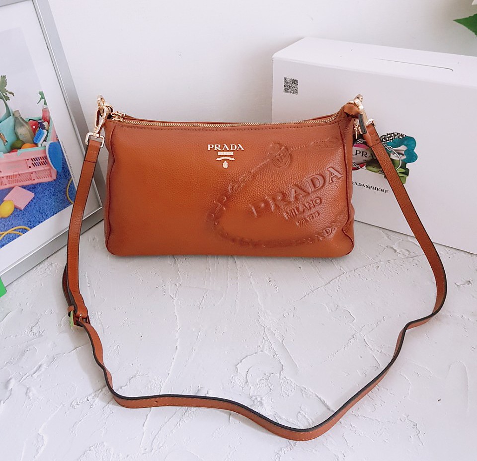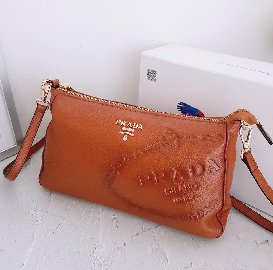 프라다 유진 불박 크로스백 브라운