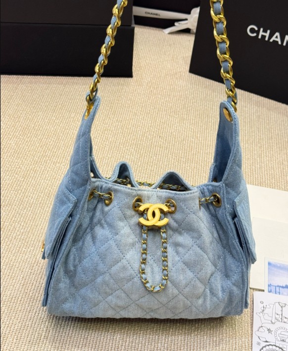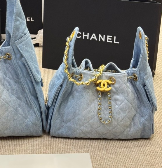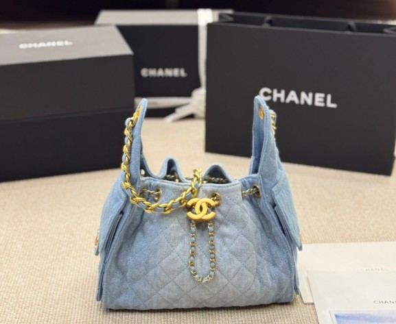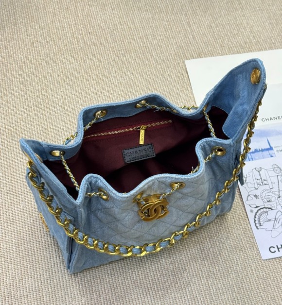 샤넬 25백 워시드 데님 골드 메탈 블루 스몰