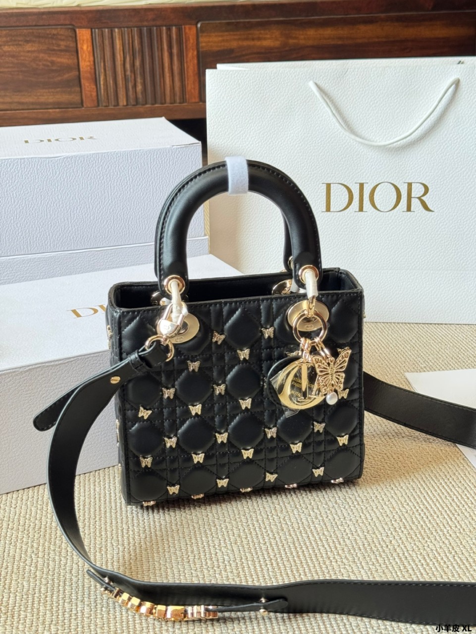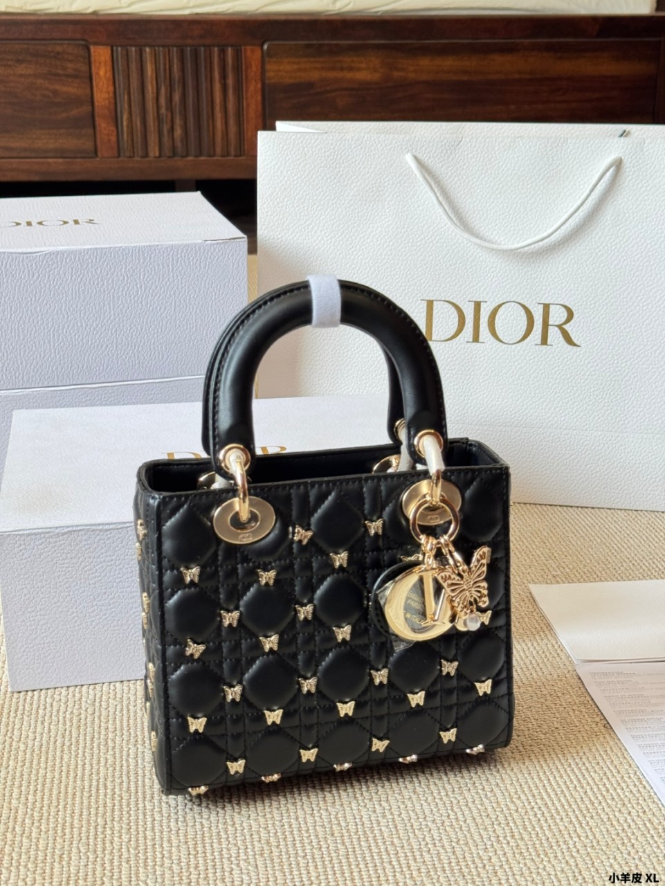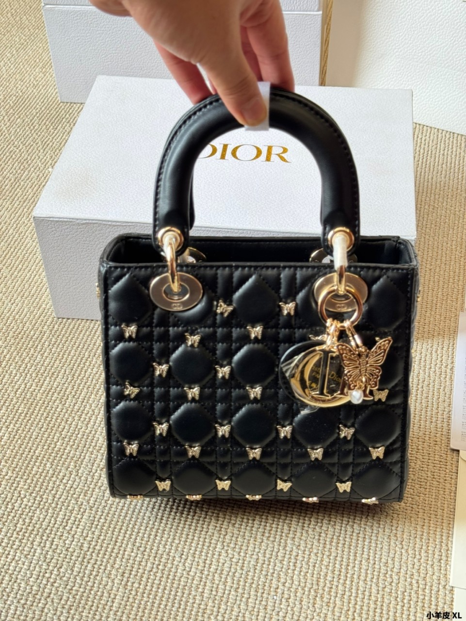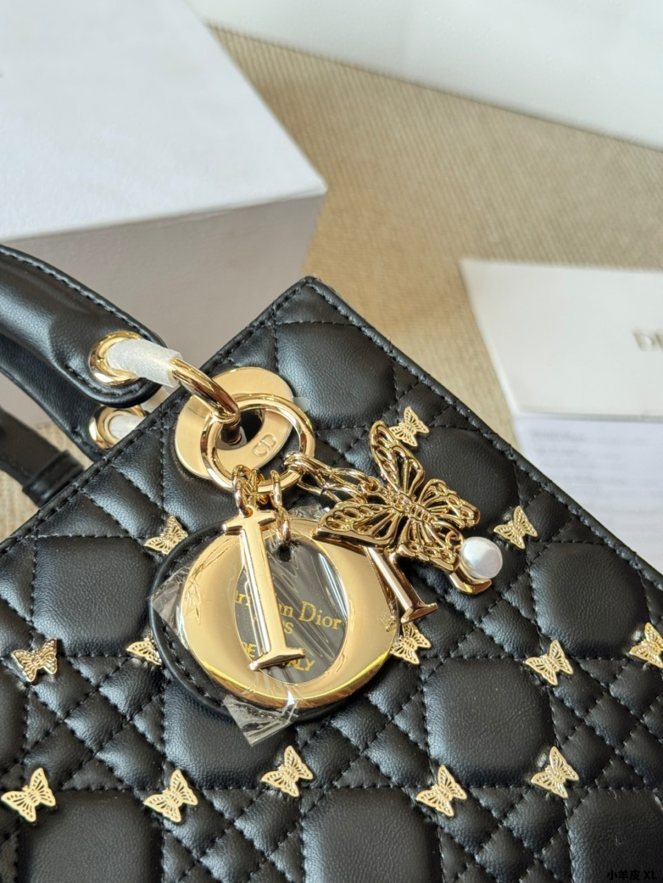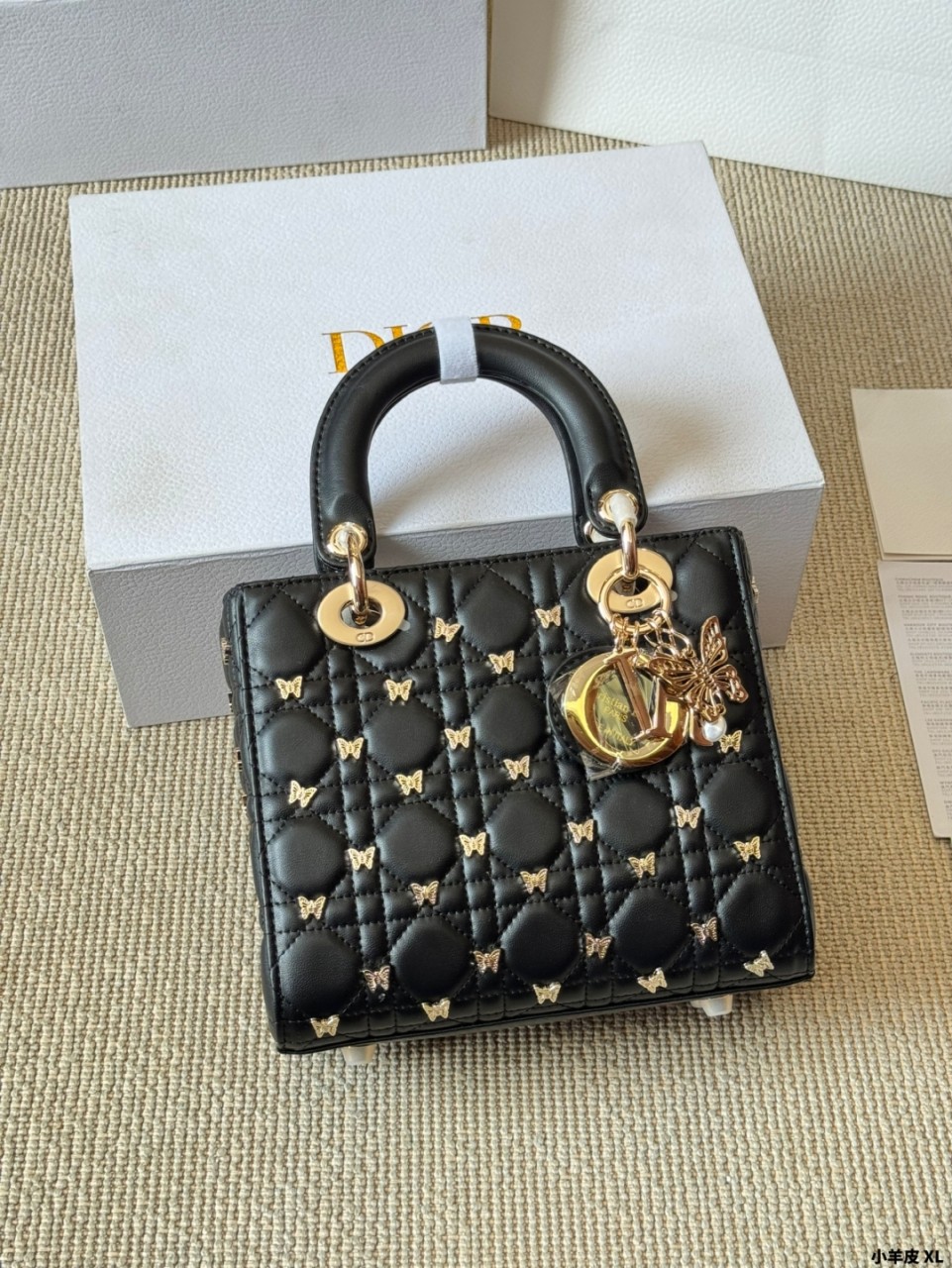 디올 스몰 레이디 백 골드 피니쉬 버터플라이 스터드 블랙