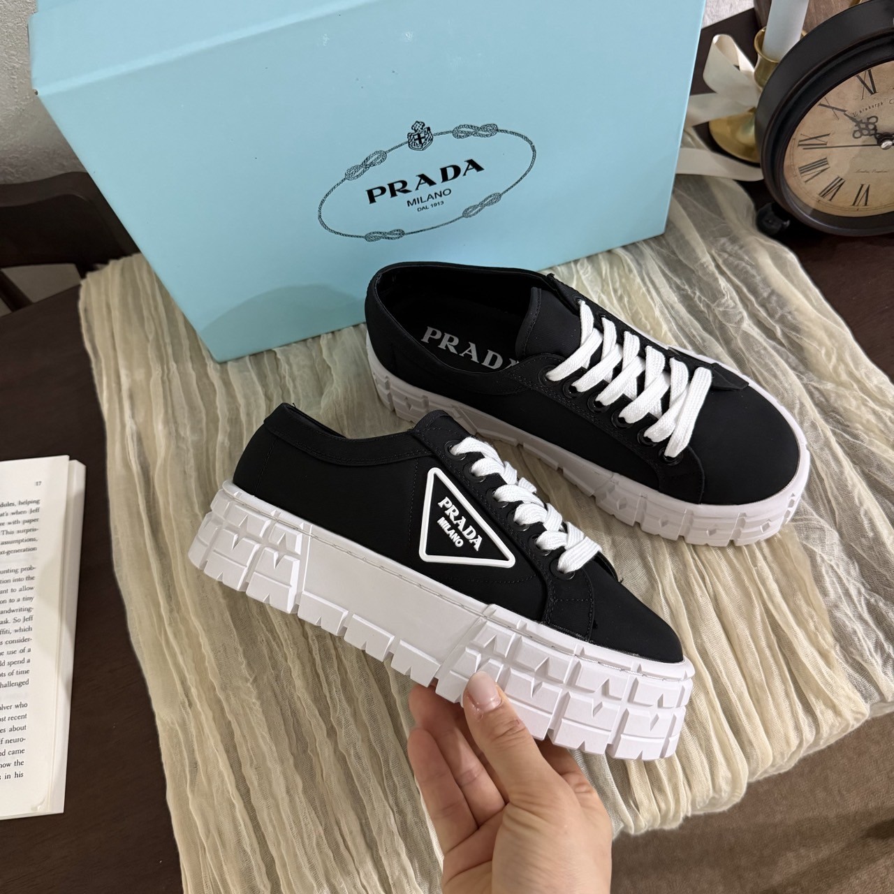 프라다 나일론 개버딘 스니커즈