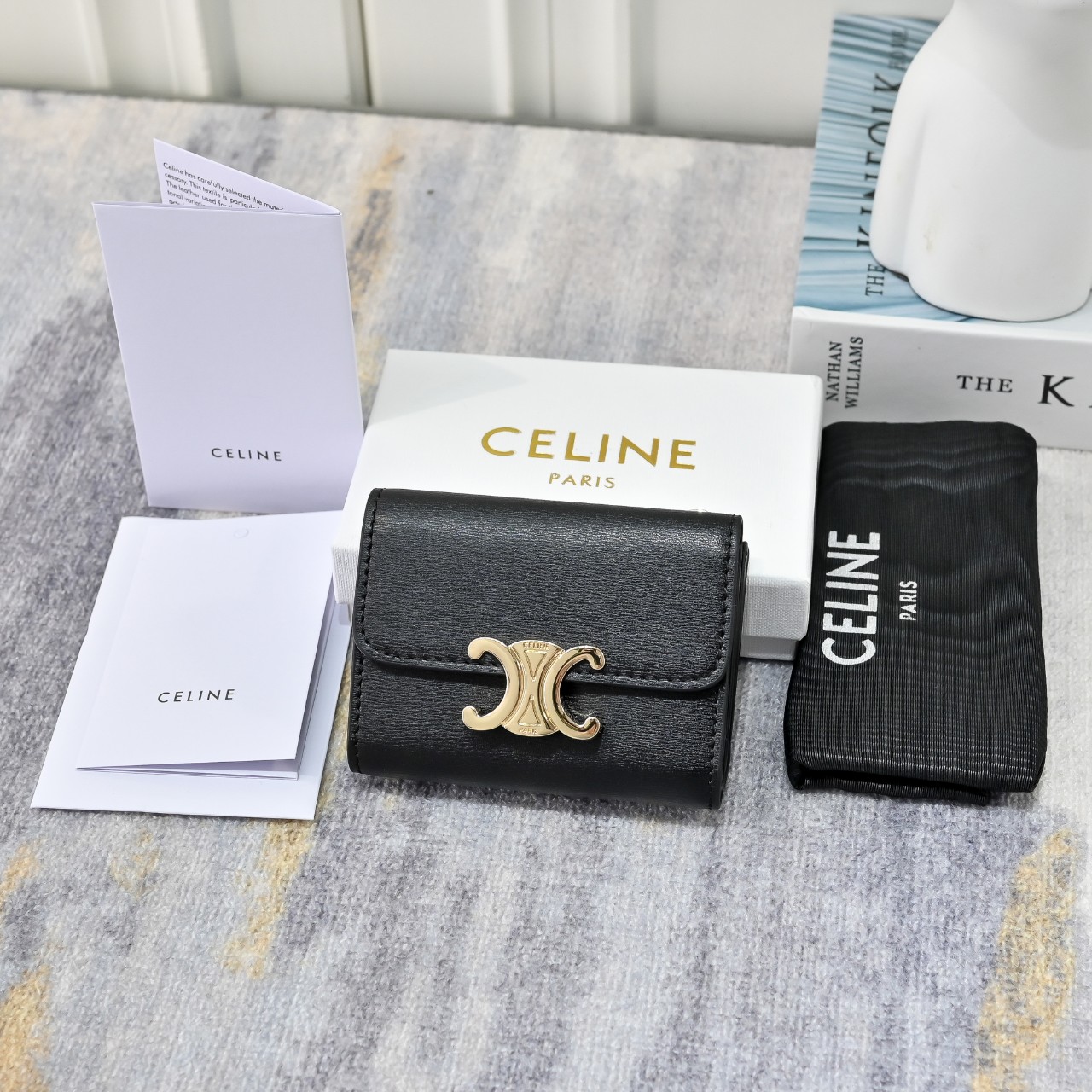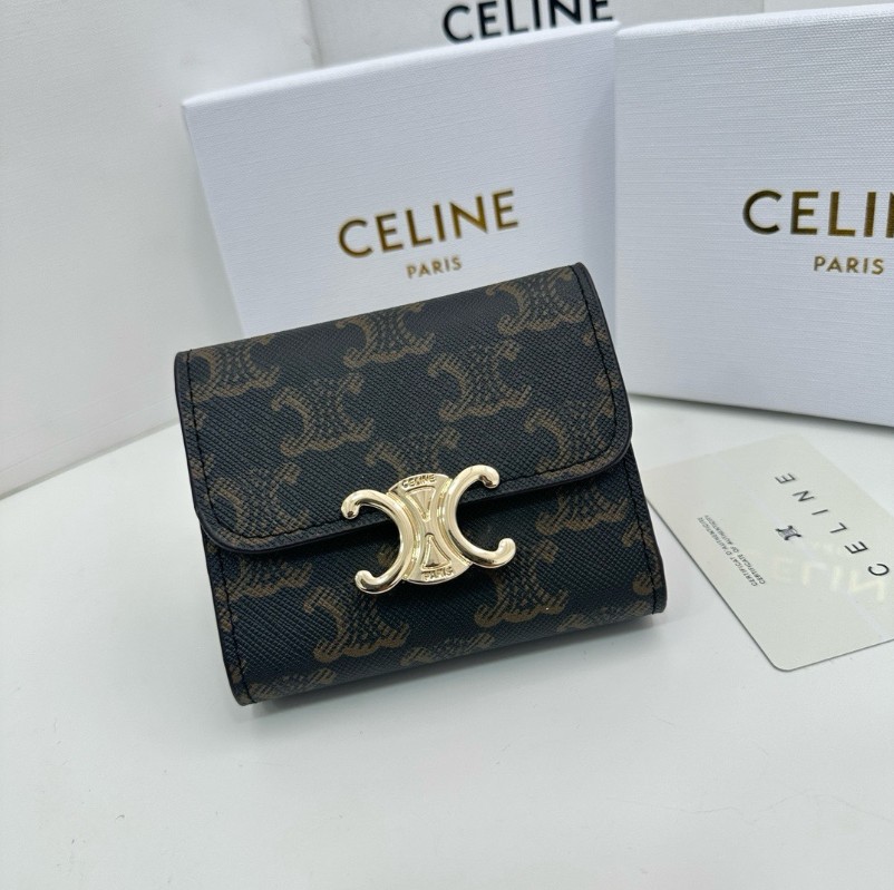셀린느 트리오페 3단 동전 컴팩트 반지갑 브라운 탄/블랙