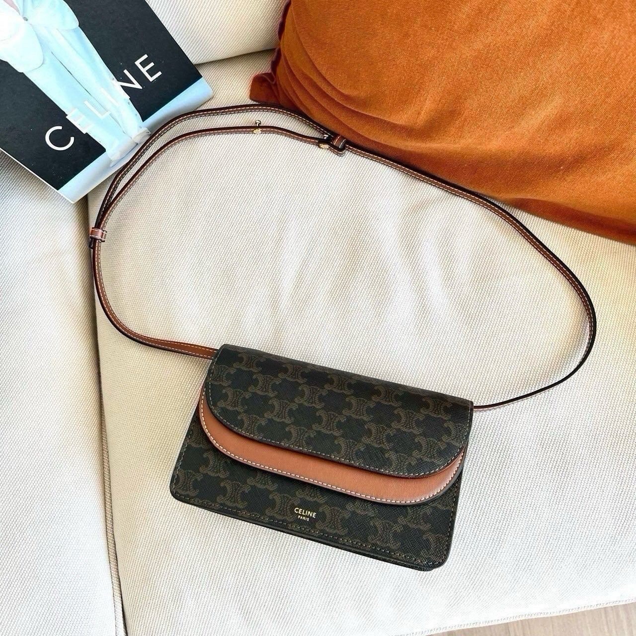 셀린느 멀티 백 트리옹프 캔버스 카프스킨 탄