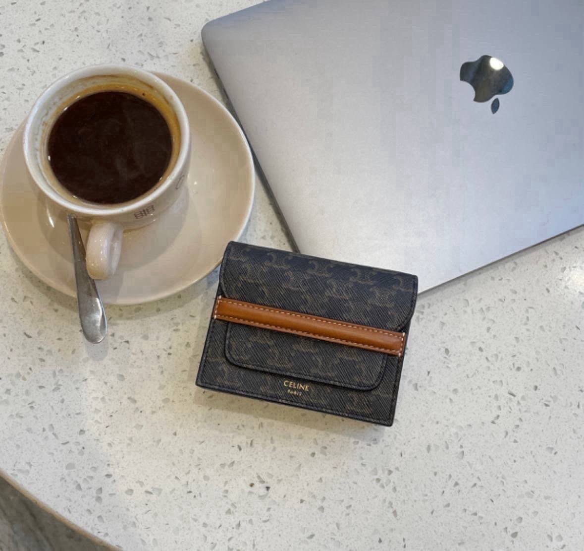 셀린느 트리오페 3단 동전 컴팩트 반지갑 브라운 탄/블랙