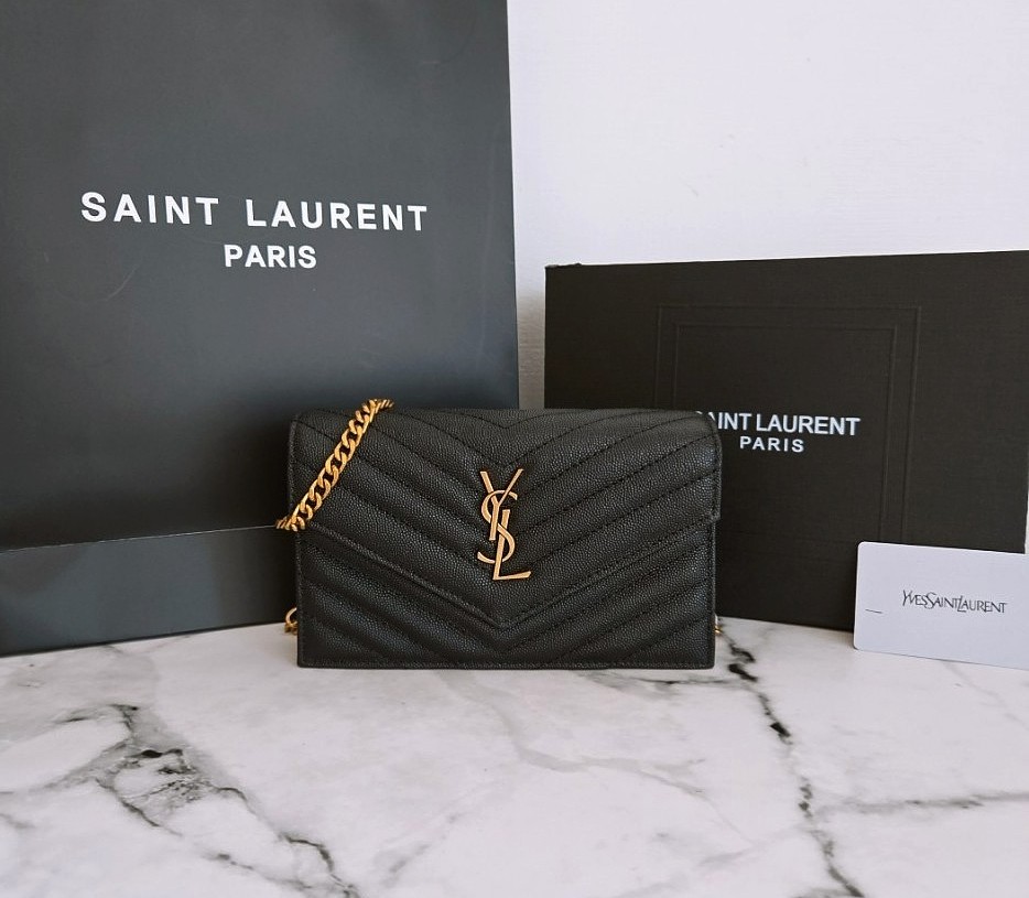 생로랑 모노그램 보아1 엔벨로프 3단 반지갑 흑장