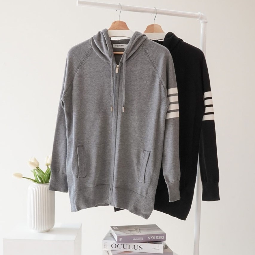 [THOM BROWNE] 톰브라운 남성 스트링 후드 4선완장 니트가디건