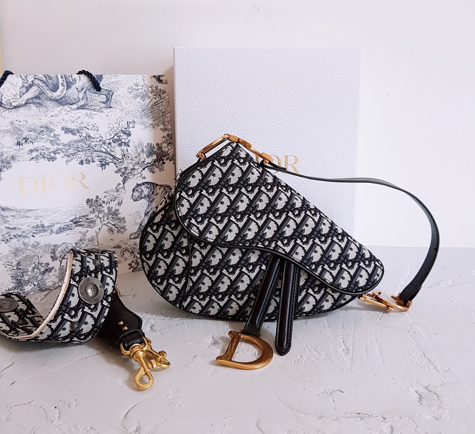 디올 오블리크 클래식 다크네이비 미듐 새들백