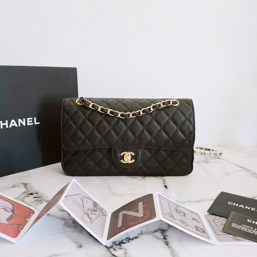 샤넬 리뉴얼 클래식 캐비어 미듐 금장
