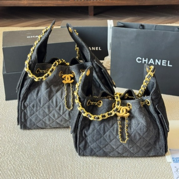 샤넬 25백 워시드 데님 골드 메탈 스몰