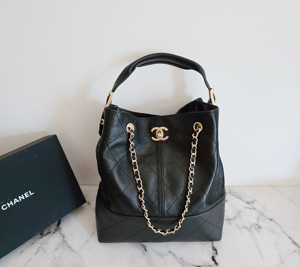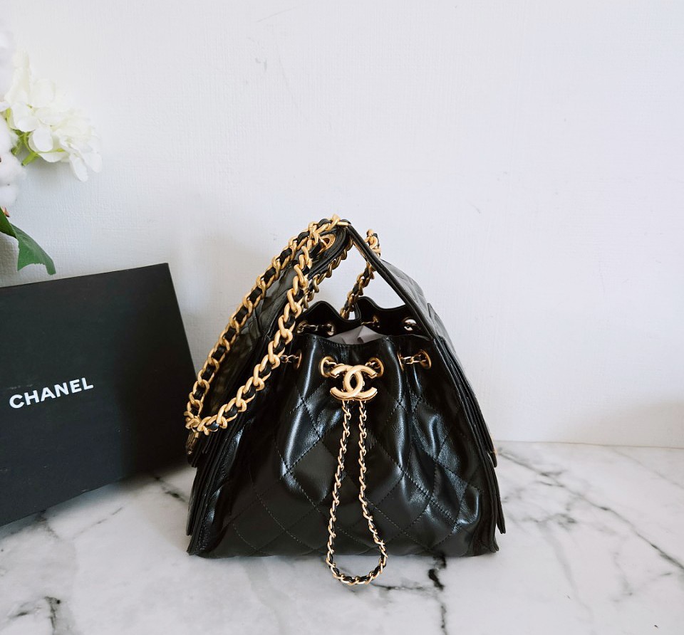 샤넬 호보백 스몰 램스킨 금장 블랙