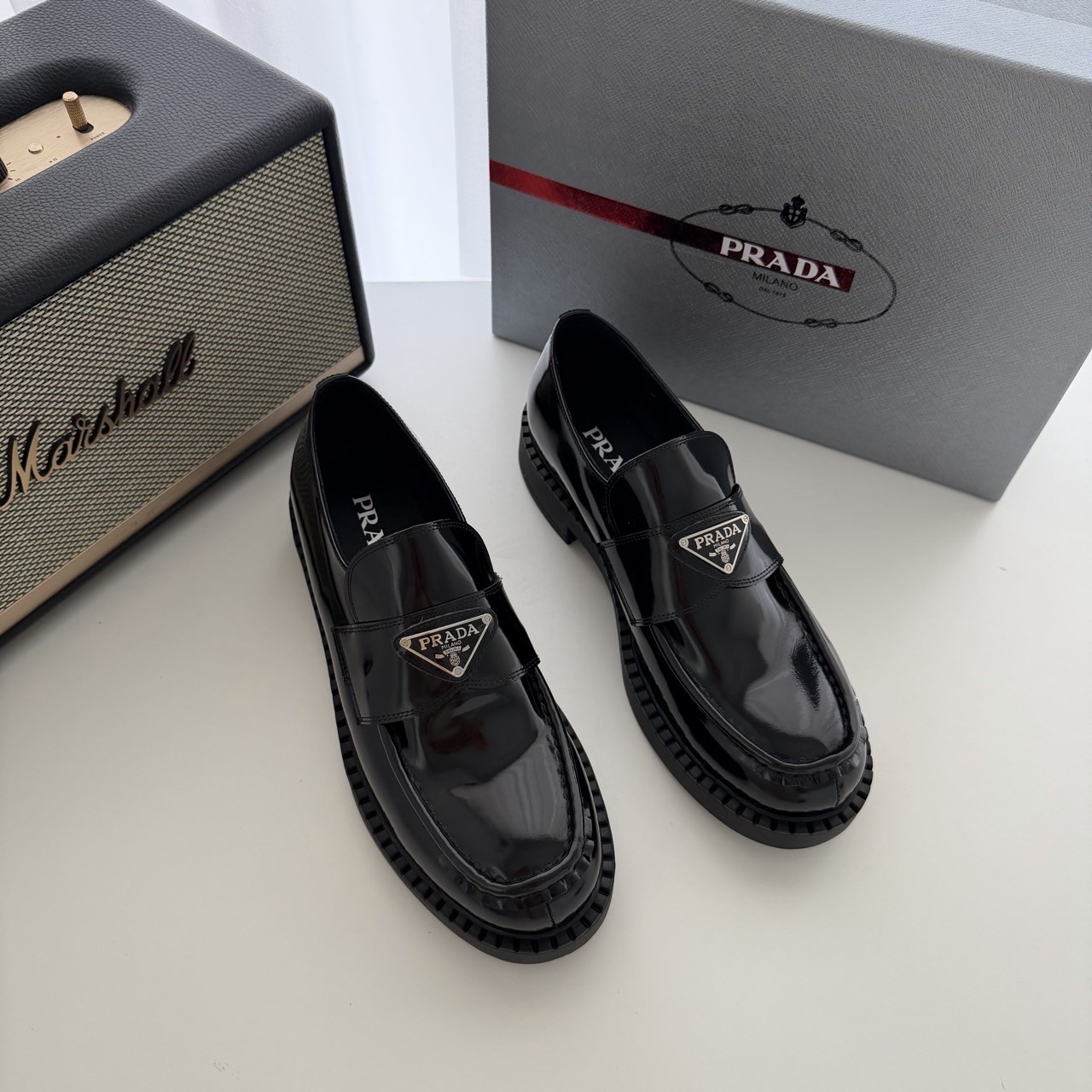 프라다 초콜릿 브러시드 로퍼