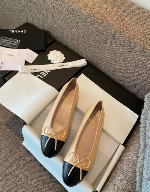샤넬 투톤 램스킨 발레리나 플랫슈즈 베이지 블랙