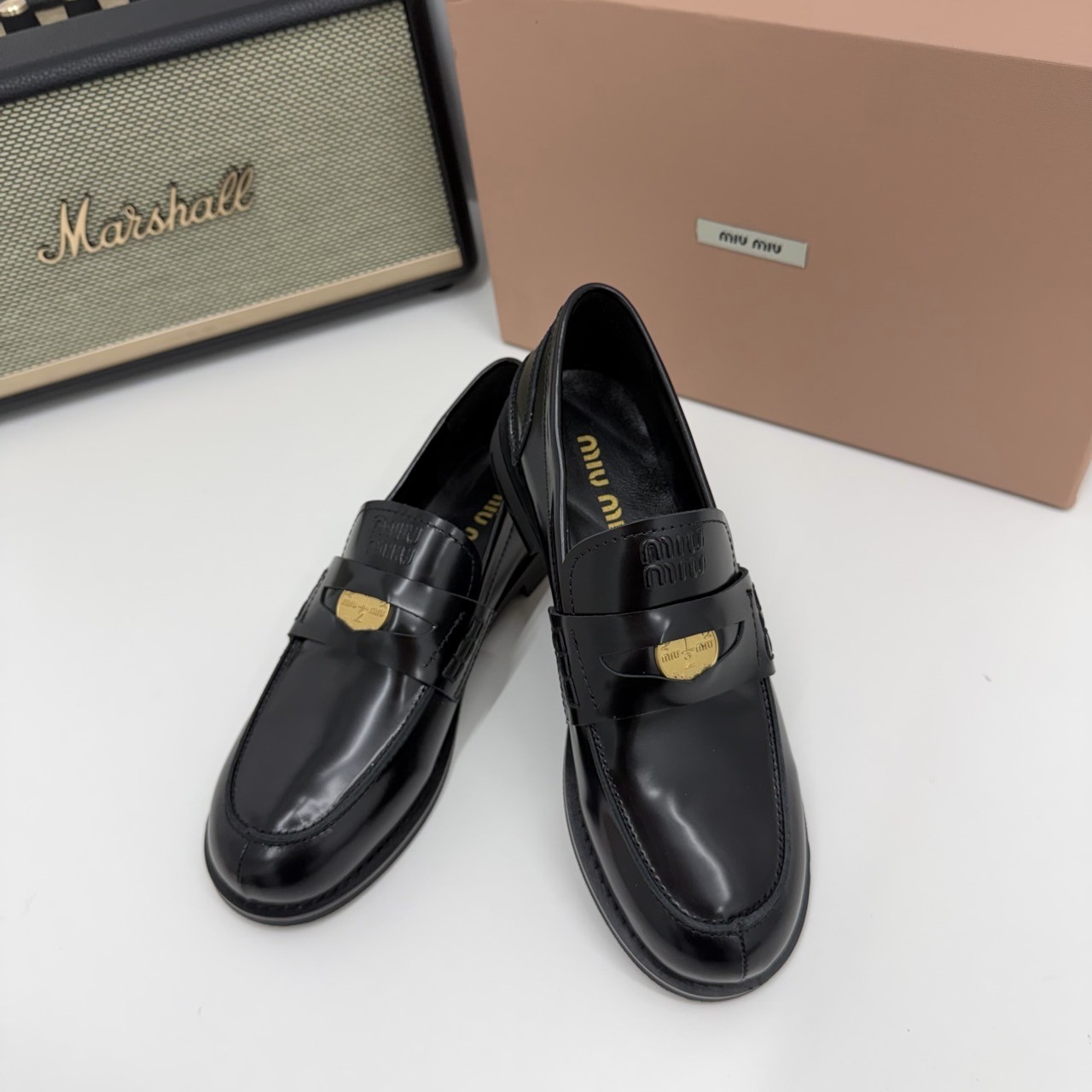 미우미우 브러쉬드 가죽 페니 로퍼